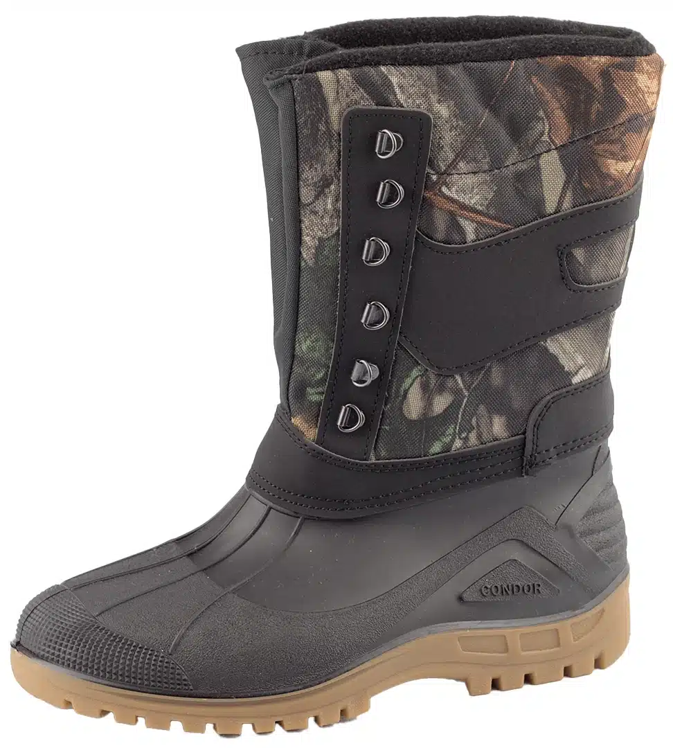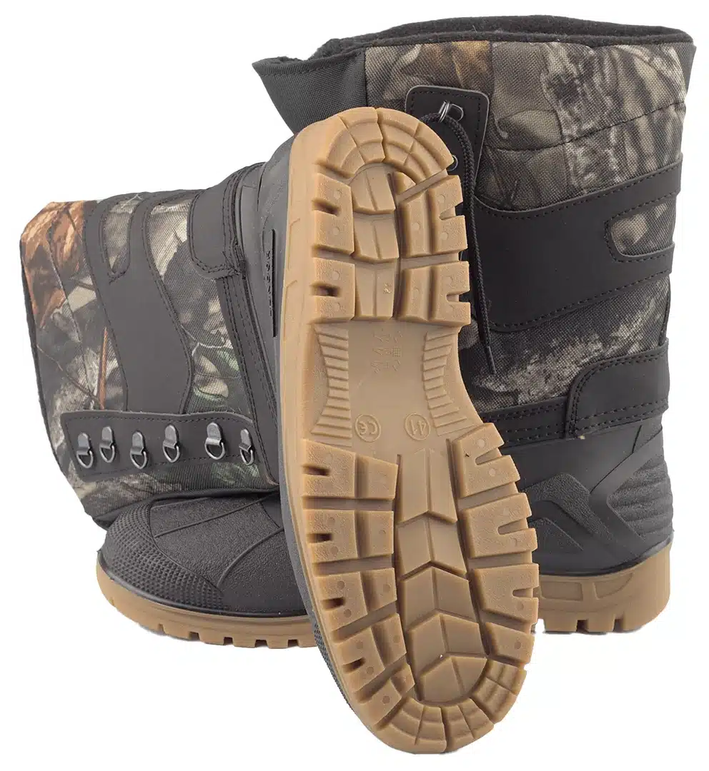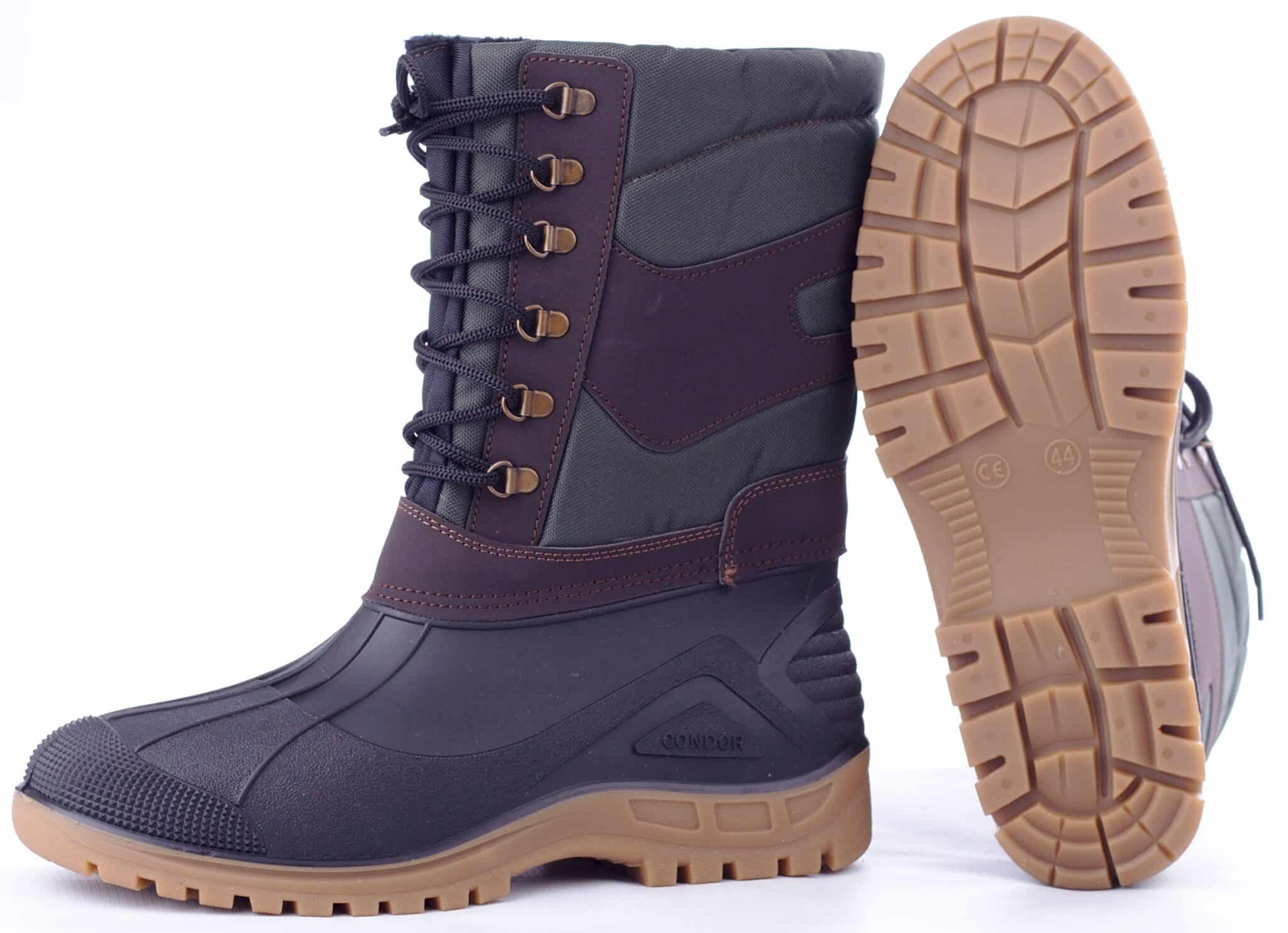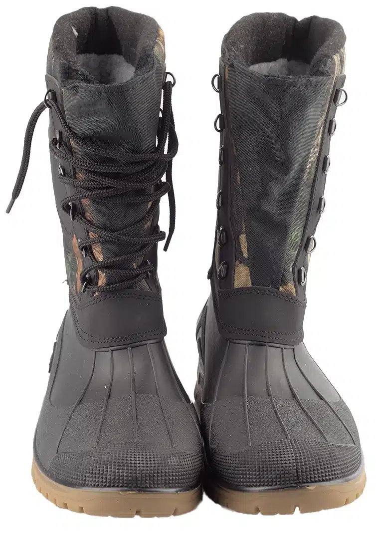 Високи непромокаеми ботуши, ловджийски модел с ходило от термокаучук и връзки. Имат топла вата и са изключително удобни и леки. Подходящи са за ловджии, за разходки в планината, както и за работа на открито. Комфортни и практични ловджийски ботуши с връзки, гумена основа и вата. Дизайнът и цветовете на този модел могат да варират при различните номера. Консултирайте се с нас преди поръчка!
