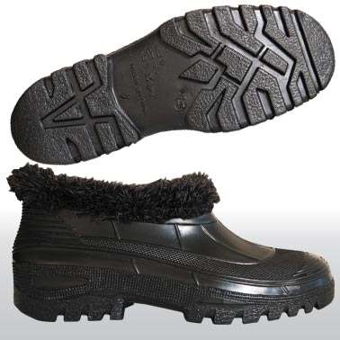 Зимни галоши от ПВЦ – ватирани. Изработени са в черен цвят. Много подходящи са за ежедневна употреба през зимата при работа по поддръжката на дворното ви място, при почистване на помещенията на домашните животни и други. Галошите осигуряват добра изолация от влага и същевременно ще запазят краката ви топли. Галоши освен ватирани предлагаме и в летен вариант, отново в черен цвят.