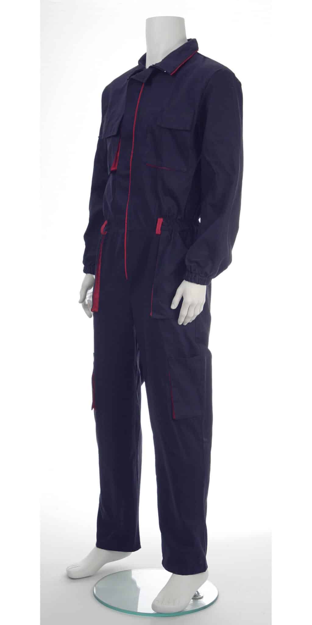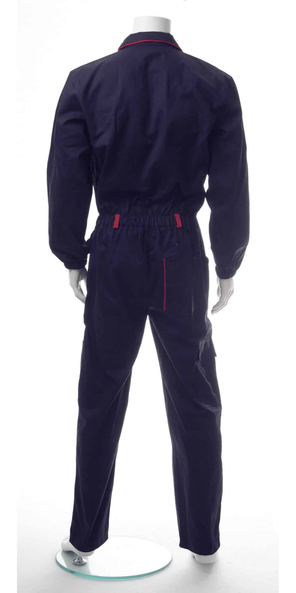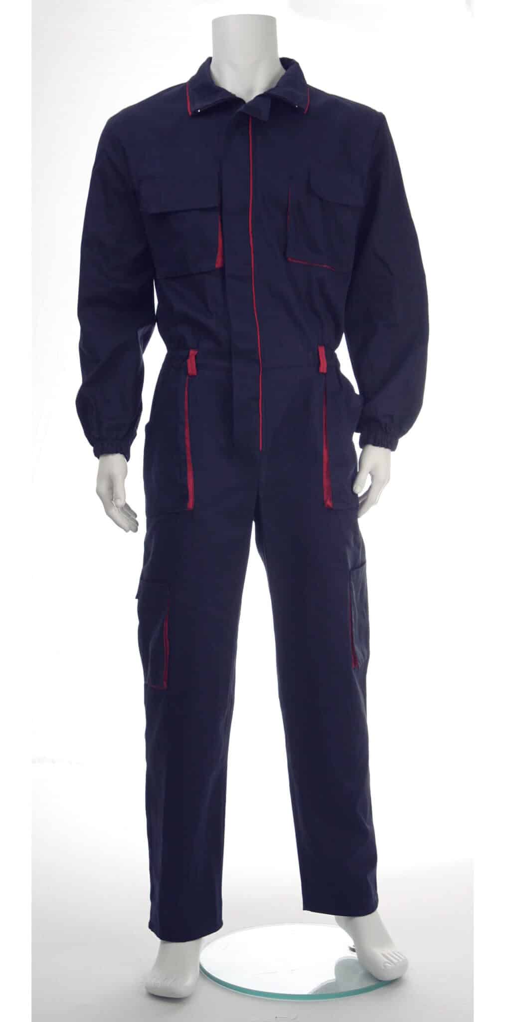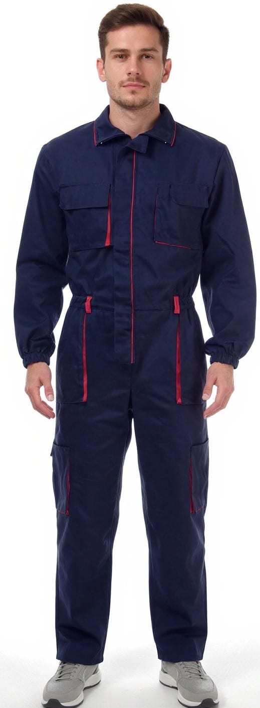 Работен гащеризон цял произведен от 100% памук по удобна и ергономична кройка. Моделът е с общо седем джоба: два горни на гърдите с капаци и велкро (походящи за мобилен телефон), два обемни предни джоба, по един обемен и един инструментален на крачолите, също така един заден джоб. Закопчаването е отпред с цип покрит с пластрон. Ръкавите са завършени с ластик за по голяма безопасност при работа с машини.