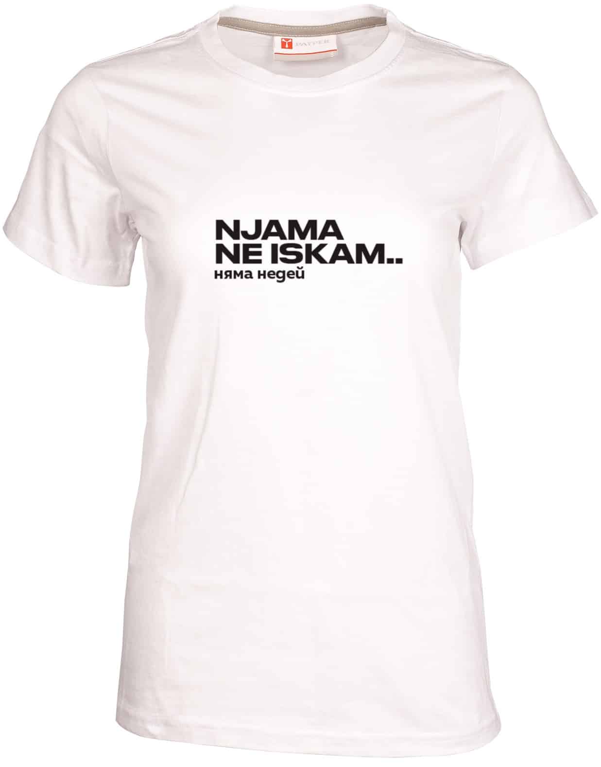 Създадена за жени с характер, които не обичат извинения и държат на дисциплината – с намигване, разбира се. Изработена от 100% памук, тази тениска е изключително удобна за ежедневна употреба. Меката материя осигурява комфорт през целия ден. С висококачествен DTF печат, който остава ярък и ясен дори след многократно пране. Вталената кройка подчертава силуета, а облото деколте придава женствен завършек. Предлага се в два класически варианта – бяла тениска с черен надпис и черна с бял надпис. Размерите от XS до 2XL я правят подходяща за всяка фигура и стил. Дамска тениска Няма не искам…  е идеален избор за ежедневно носене или семейни събирания с доза хумор. Комбинирайте с Мъжка тениска Няма не искам… или с някой от  другите  модели тениски с печат от колекцията на Тики.