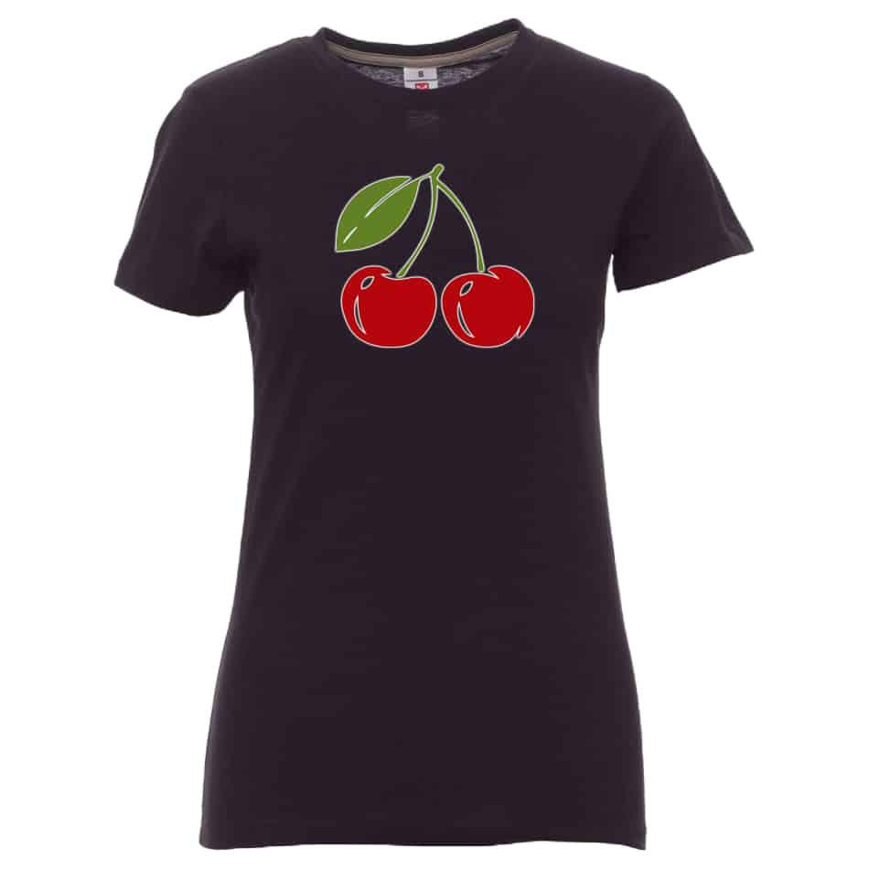 Представяме ви дамска тениска Черешки – черна на цвят от 100% памук. Отлично предложение за гардероба на всяка дама през летния сезон. Изображението е отпечатано чрез пълноцветен висококачествен DTF печат от Тики. Тениската има елегантен втален силует и е много удобна за ежедневна употреба. Може да изработим този модел и във вариант на бяла тениска. Поръчайте лесно дамска тениска Черешки – черна на цвят от онлайн магазина ни, като позвъните на посочените в сайта телефони. Ако имате нужда от съвет при избора на тениски с печат, нашите консултанти са на разположение, да ви съдействат.