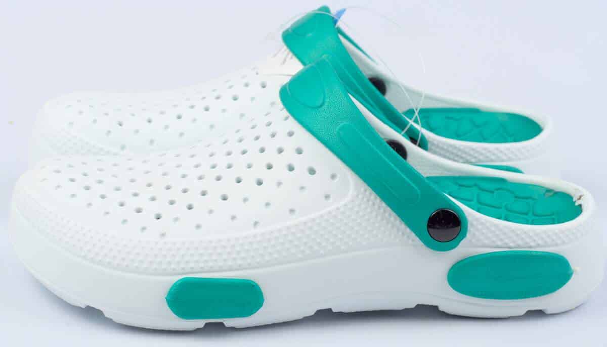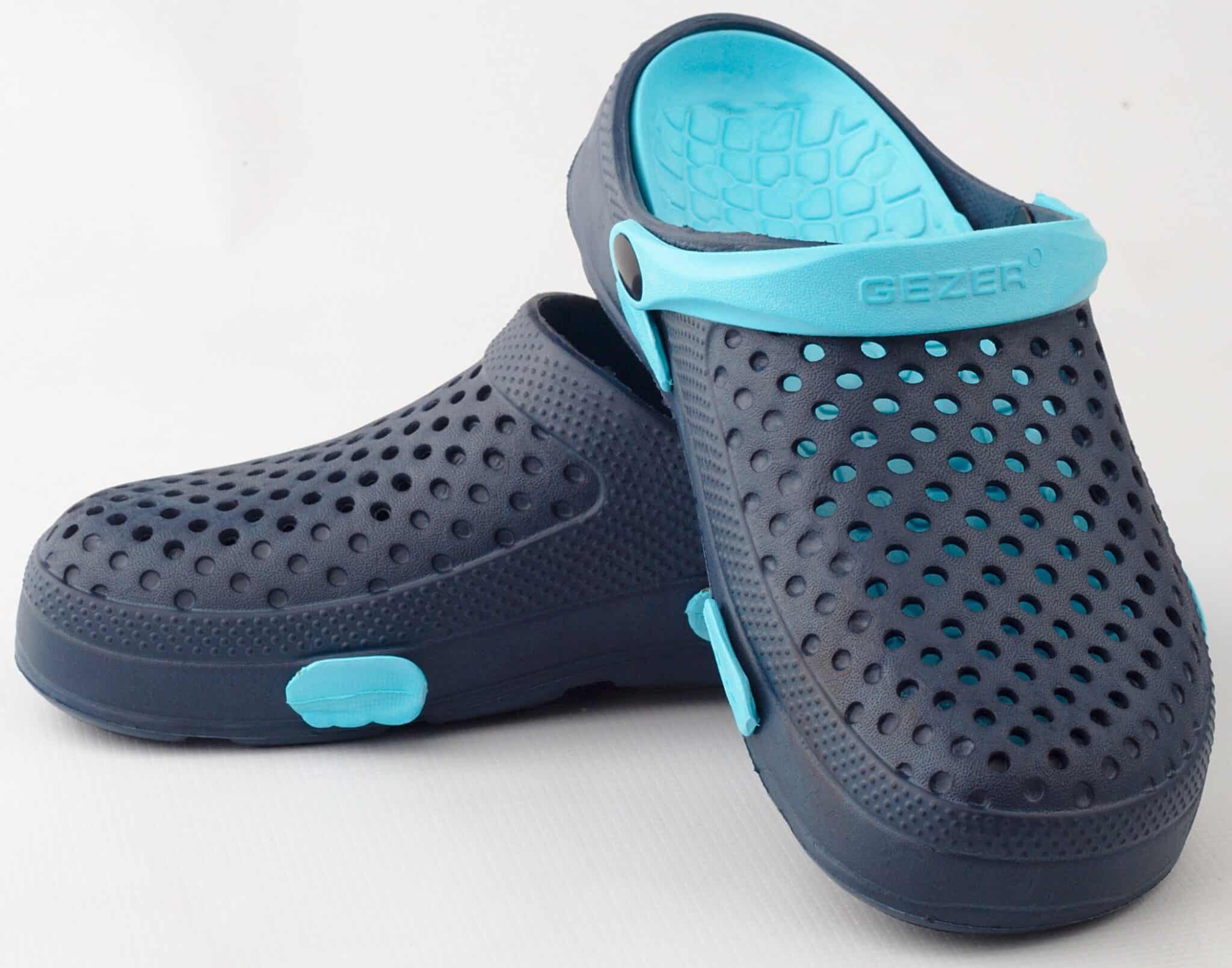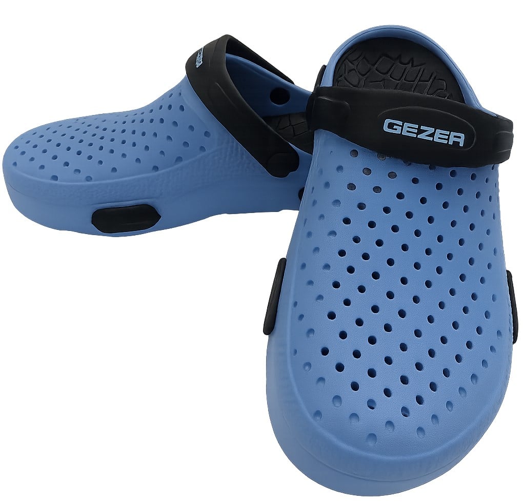 Дамски градински чехли Gezer. Леки и комфортни с дупки в горната част за по-добра вентилация. Моделът се предлага в три цветови варианта: в розов с лилави елементи, зелено с розово, в тъмносин със светлосини елементи и в бежово-сив цвят с кафеви елементи. След употреба чехлите могат да се измият. Изключително леки и удобни са. Подходящи са за ежедневна употреба у дома, при работа в градината, или в работна среда при извършване на санитарни дейности, за помощник-възпитатели в детски заведения и други. Предлагаме и мъжки градински чехли.