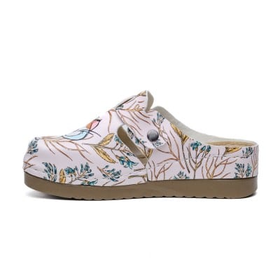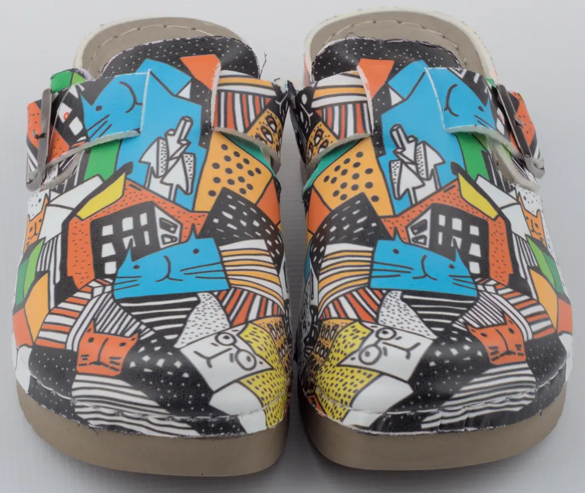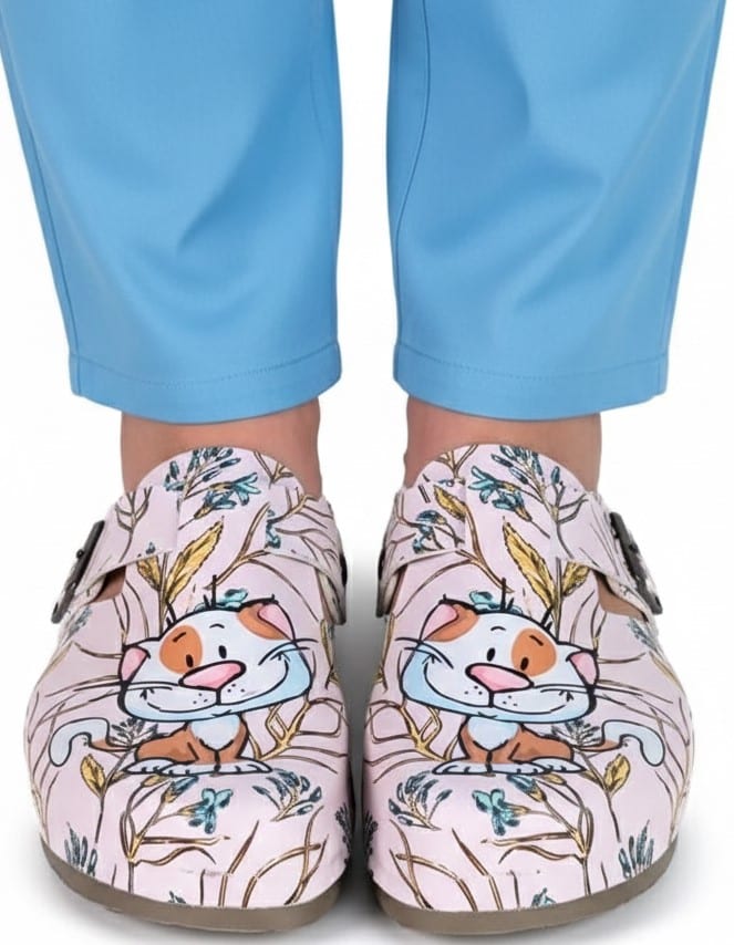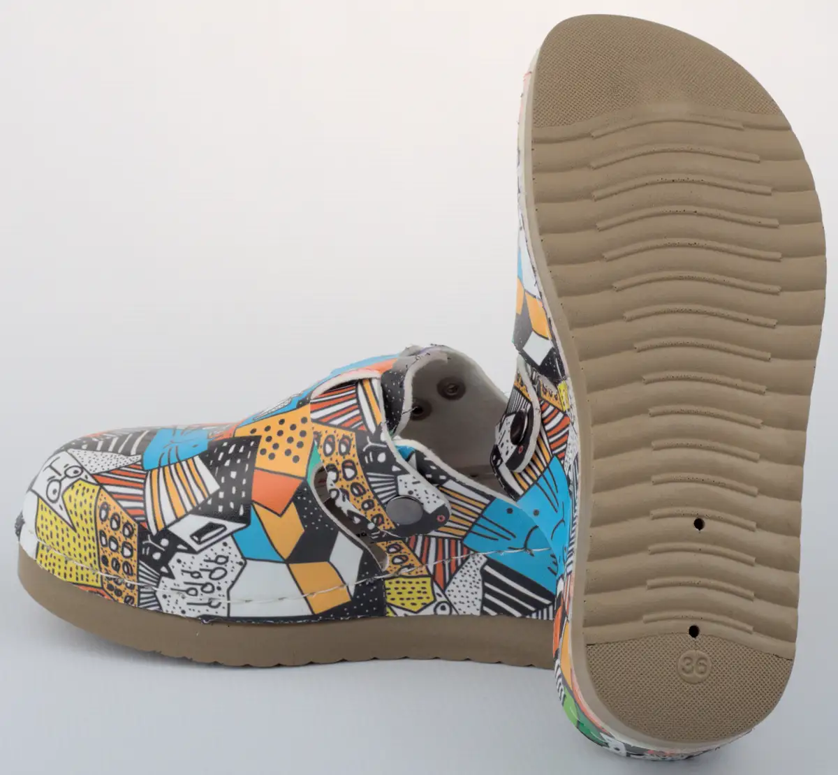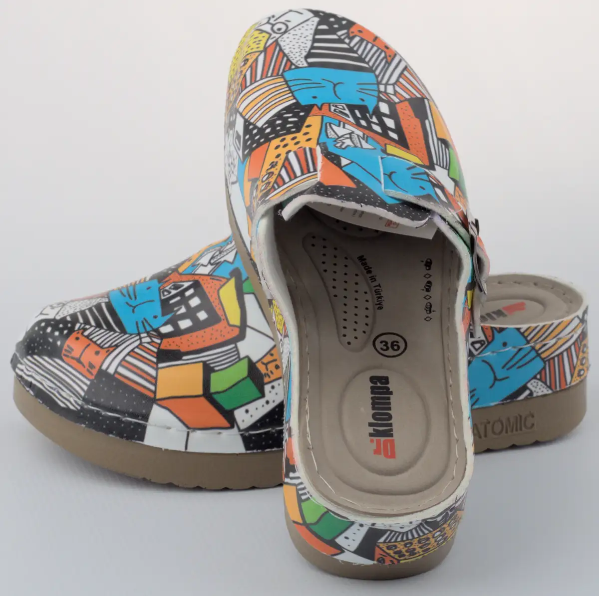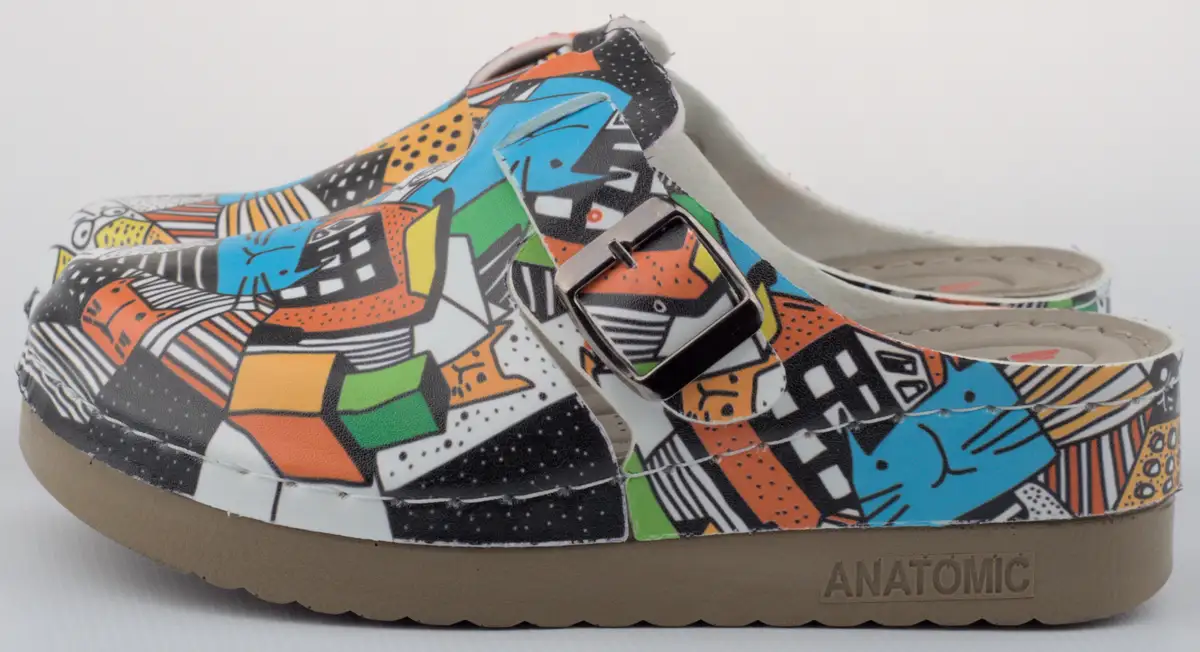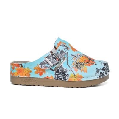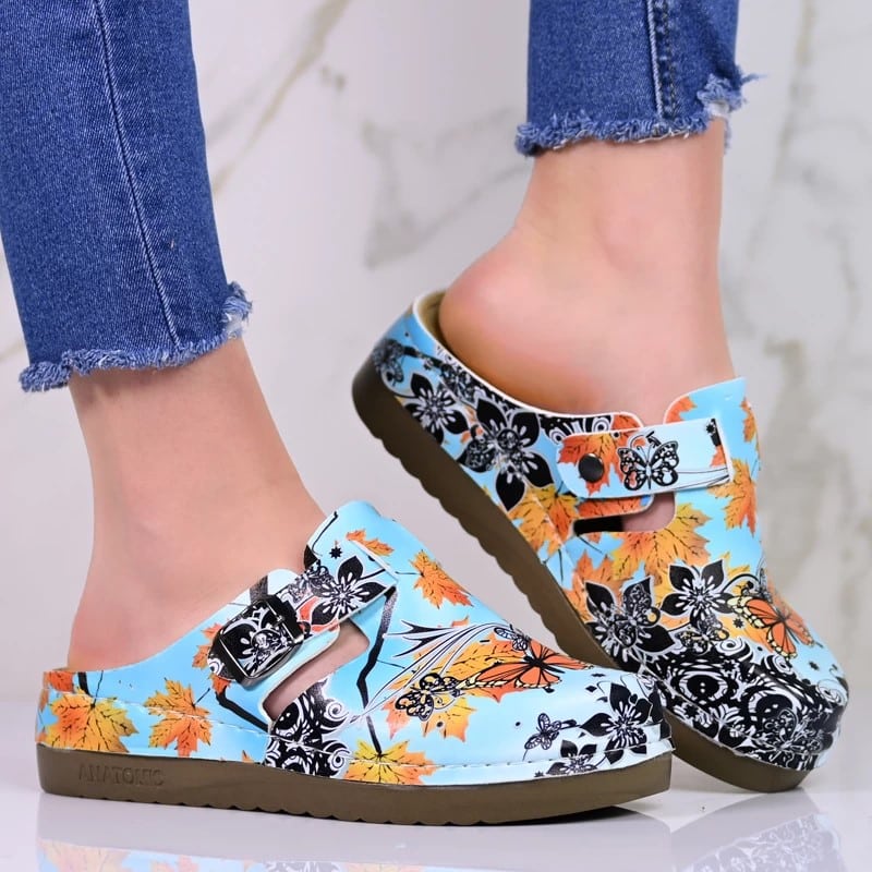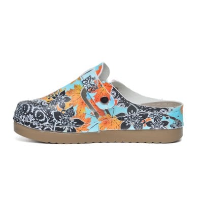 Дамско анатомично сабо Тайгърлайн с каишка в цветен принт Фауна. Моделът има възможност за регулиране на широчината на обувката според широчината на ходилото. Комфортно и подходящо при многочасова работа на крак. Сабо Тайгърлайн Фауна е отлично допълнение към медицинската униформа, към униформата на всяка камериерка, фризьорка, или хигиенистка. Подходящо е също за ежедневна употреба у дома. Предлагаме този модел и в два варианата на цветен принт Флора на цветя.