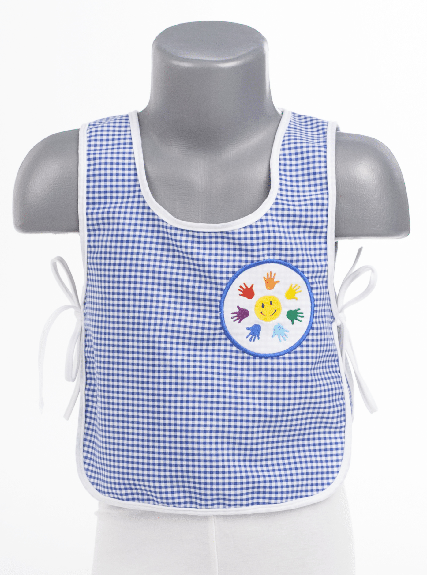 Детска престилка с връзки отстрани. Предлага се в три размера за деца в детски ясли, както и за деца в детски градини и подготвителни групи. Детската престилка с връзки отстрани се изработва по заявка, като минималното количество е 5 броя. Престилката с връзки отстрани може да бъде изработена в цветове, по заявка на учебното заведение. Детска престилка може да бъде бродирана с емблемата на детската градина, или името на групата. Посочената цена не включва апликация с бродерия и DTF печат. Детската престилка с връзки отстрани е изключително практична и удобна. Ще запази дрешките на децата, като в същото време малчуганите ще се чувстват като екип, защото всички ще имат унифицирано облекло. Материята е лека и удобна. Освен престилките с връзки отстрани предлагаме и детски престилки с връзки през врата.