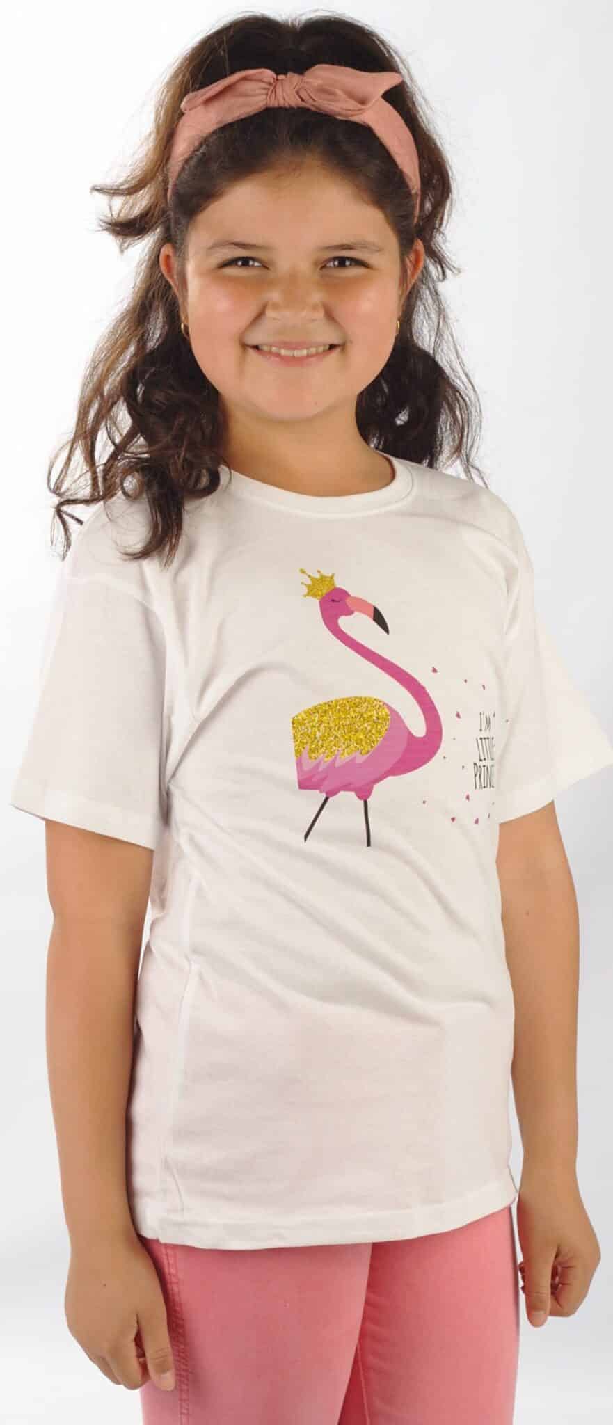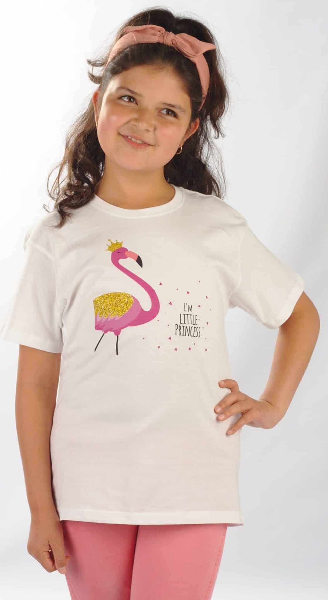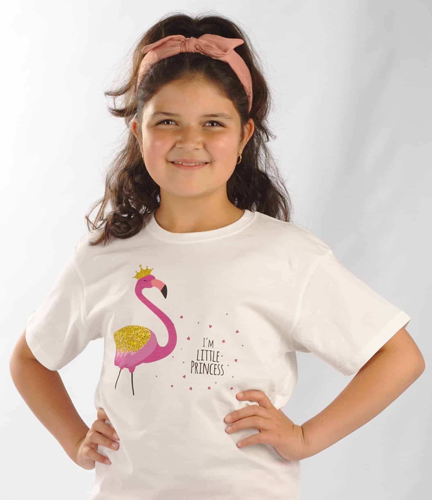 Детска тениска Princess Flamingo за малки принцеси. Материята на тениската е 100% памук. Много мека и приятна на допир. Моделът има удобна права кройка и осигурява свобода на движенията. Може да поръчате детска тениска Princess Flamingo в 6 размера: от 2 до 12 години. Можем да персонализираме подаръка за вашето дете с печат на името му. Доплащате само 5,60 лв. В добавка може да ви изработим детска престилка с печат.