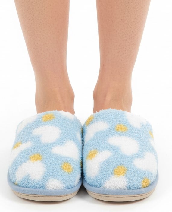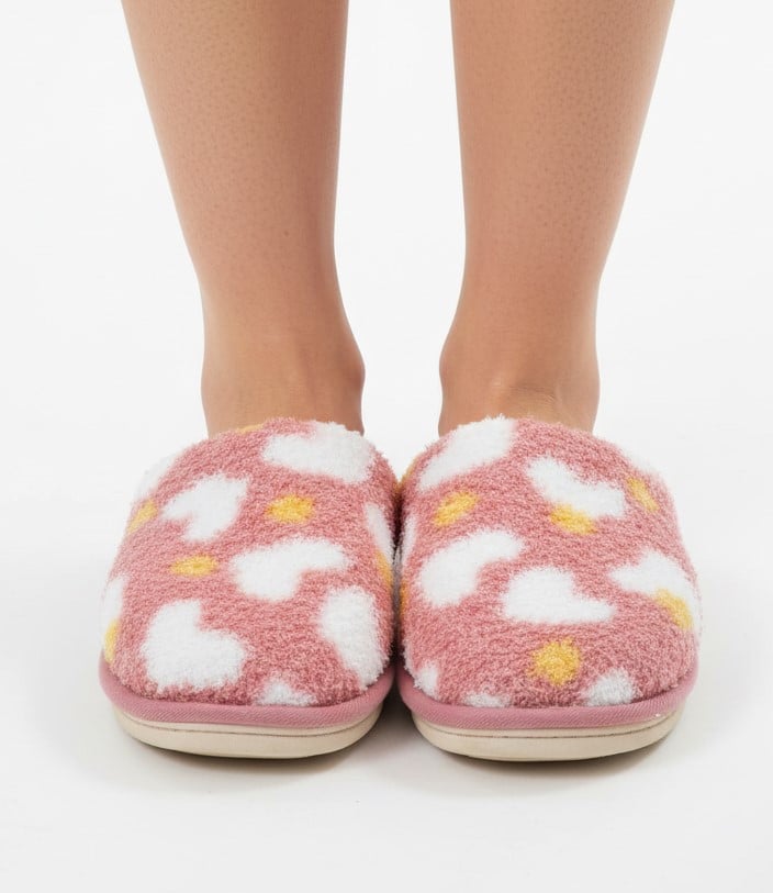 Удобни домашни чехли  със симпатичен дизайн със сърчица и пастелни цветове. Имате възможност да избирате от няколко цвята – подходящи за мъже и за жени. Чехлите са с гумена подметка. Външната част е текстилна. Вътрешната част е изработена от мек пух в сив цвят. При желание на конкретен цвят домашни чехли, напишете го в бележка към поръчката си, или се свържете с нашите консултанти на телефона 08955275120894721400 за уточняване на наличните цветове. Не всички цветове са налични във всяка номерация!
