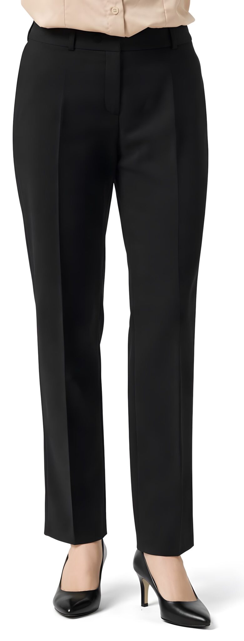 Класически дамски черен панталон с права кройка. Изработен е от 100% полиестерен плат. Материята е много лека и има лесна лесна поддръжка. Създаден е за удобство в динамична работна среда. Лесен за гладене, бързо съхнене, устойчив на петна. За стилен и професионален външен вид на работното ви място заложете на черен панталон. Изключително подходящ за работно облекло на сервитьорки, барманки, хотелски и кетъринг персонал.