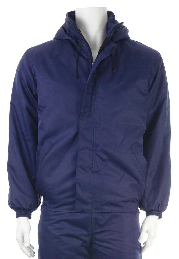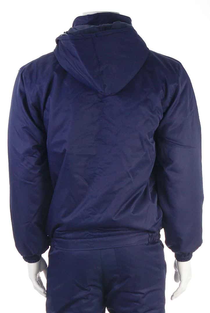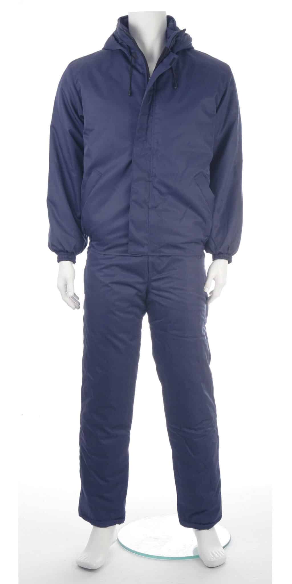 Костюм ватиран от промазка в тъмносин цвят ТИКИ. Състои се от комплект яке и панталон, осигуряващи студо и ветрозащита. Изработени са от 100% полиестерен промазан плат, полиестерен хастар и полиестерна вата с тегло 150 г/м2.