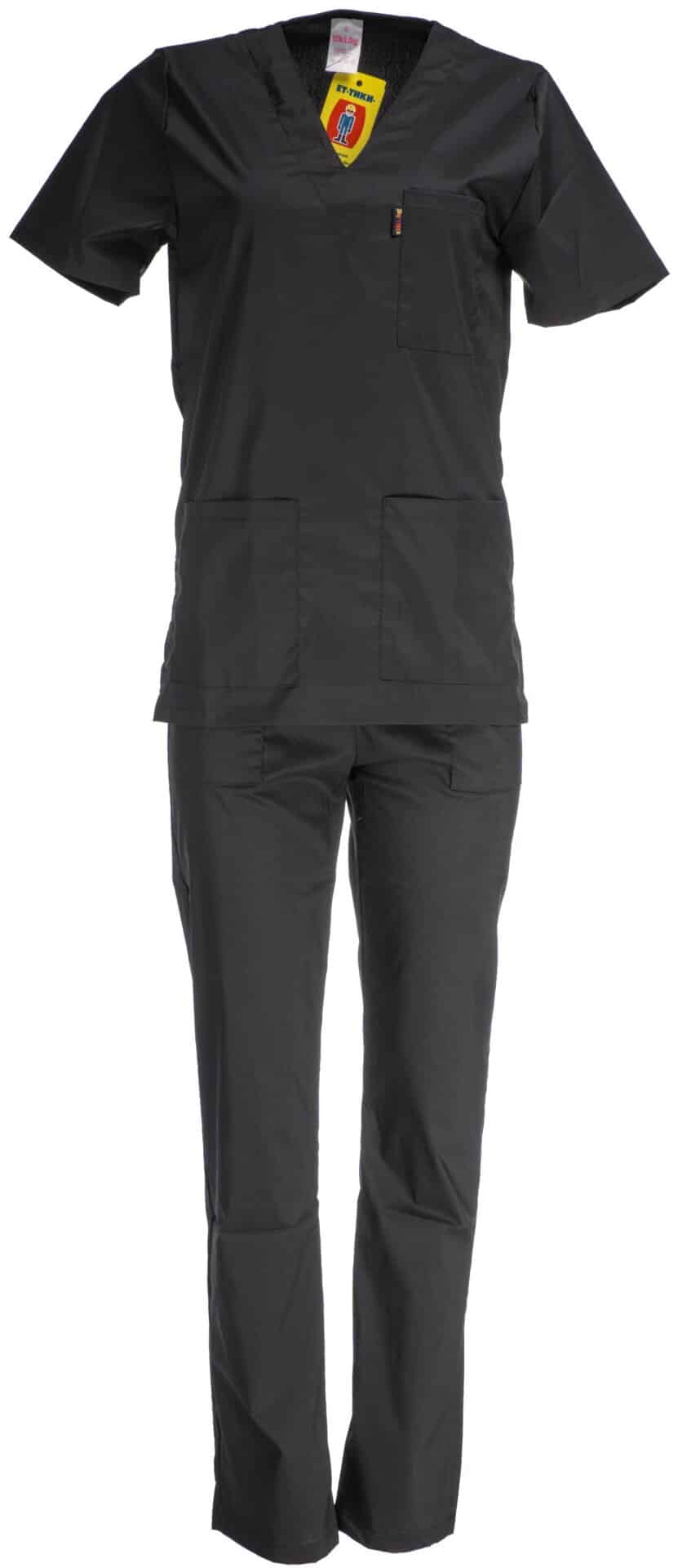 Костюм унисекс лукс в черен цвят е практично решение за работна униформа от Тики. Кройката му е права и еднакво подходяща за мъже и за жени. Може да се екипирате за работа с костюм унисекс лукс черен, ако работите в сферата на здравеопазването, хигиенните услуги, ако сте рехабилитатор, козметик, или готвач. Може да го поръчате онлайн с бърза доставка с Еконт или Спиди. Комбинирайте с подходящо сабо и престилка.