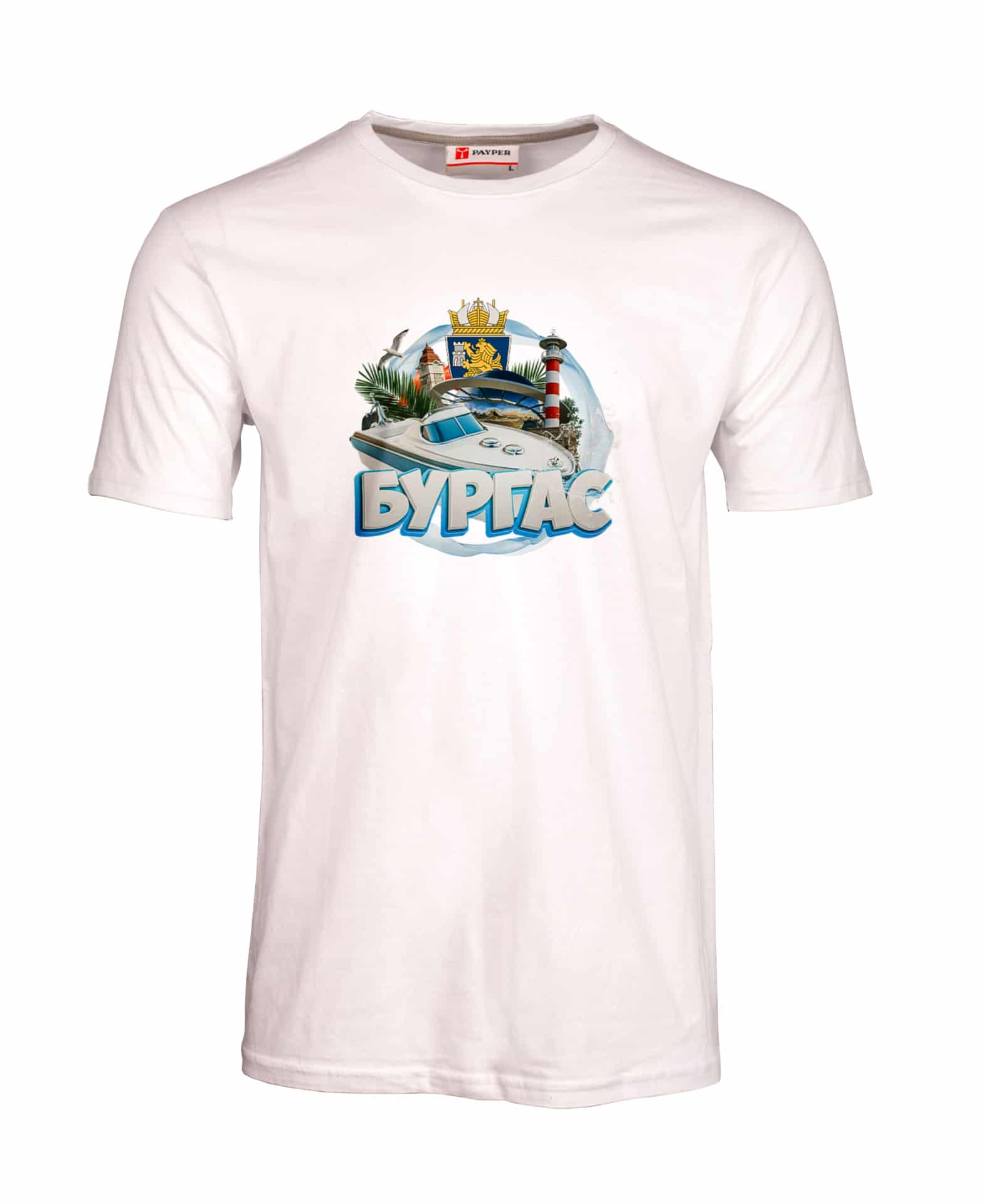 Мъжка тениска Бургас се предлага в класическите цветове – черно и бяло, с размери от XS до 5XL. Перфектна за всеки, който иска да носи частица от Бургас, където и да се намира. Дамска и мъжка тениска с този дизайн са налични и във фирмените ни магазини.