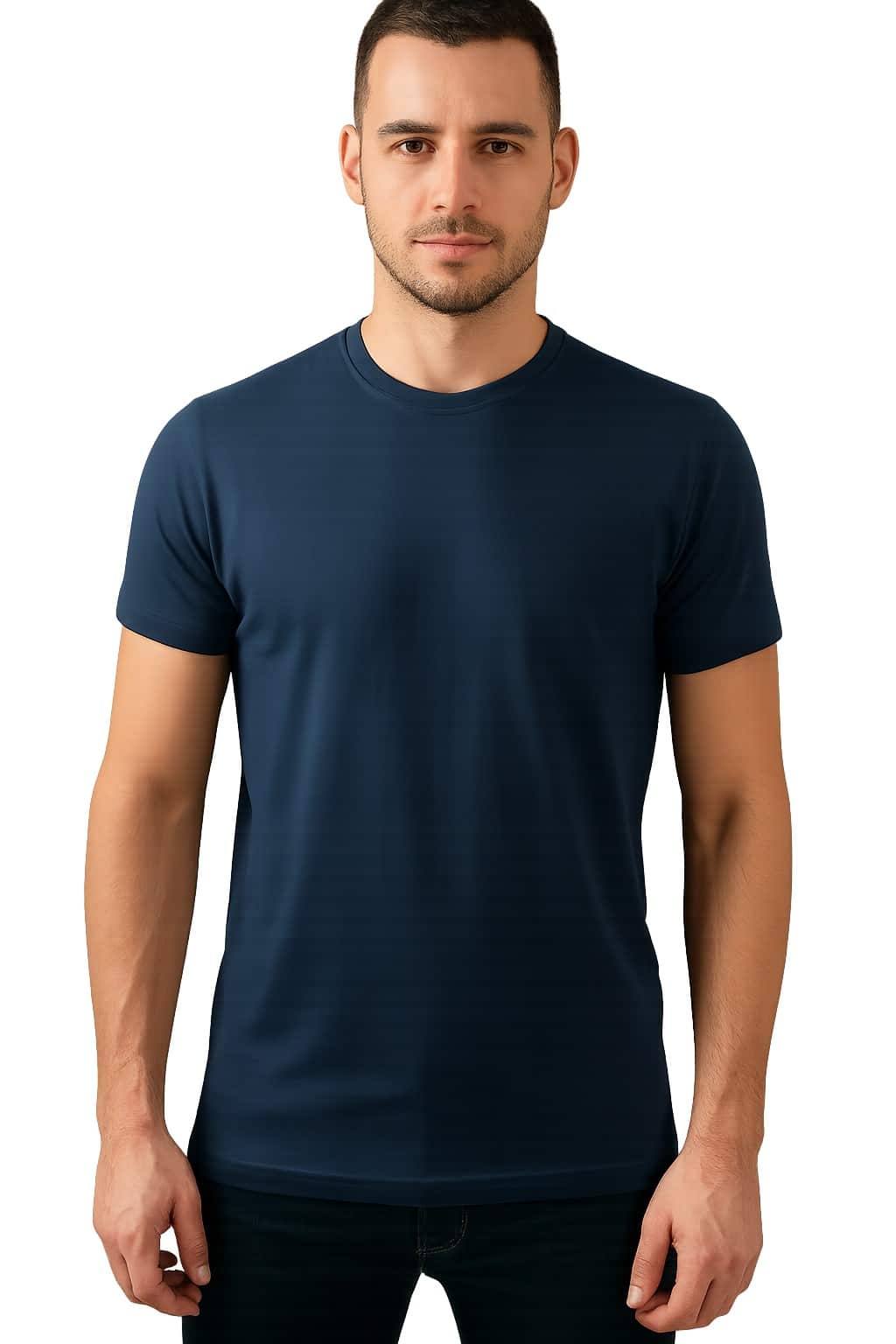 Класическа мъжка тениска Basic – navy в тъмносин цвят – отличен избор за ежедневна визия, работа или спорт. Изработена от 100% памук (сингъл джърси), с плътност 160 г/м², тя осигурява лекота при носене, устойчивост при пране и модерно излъчване. Тубуларната кройка без странични шевове гарантира свобода на движение. Деколтето е завършено с тясно бие от ластична плетка 1:1 с 5% еластан, за по-добро прилепване и дълготрайна форма. Предлага се в размери от XS до 3XL. Размери 4XL и 5XL са налични с предварителна заявка.