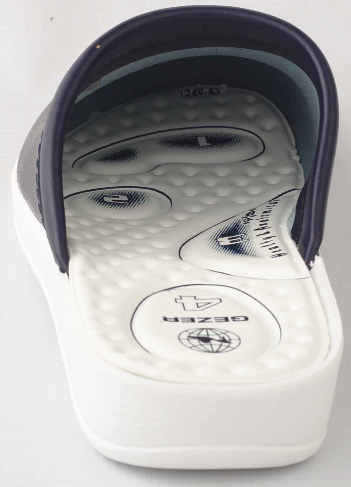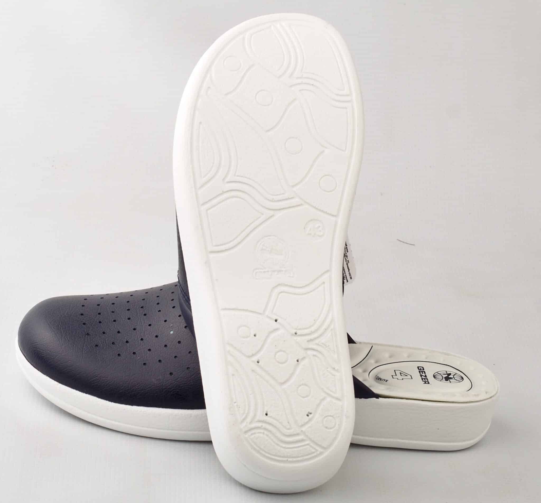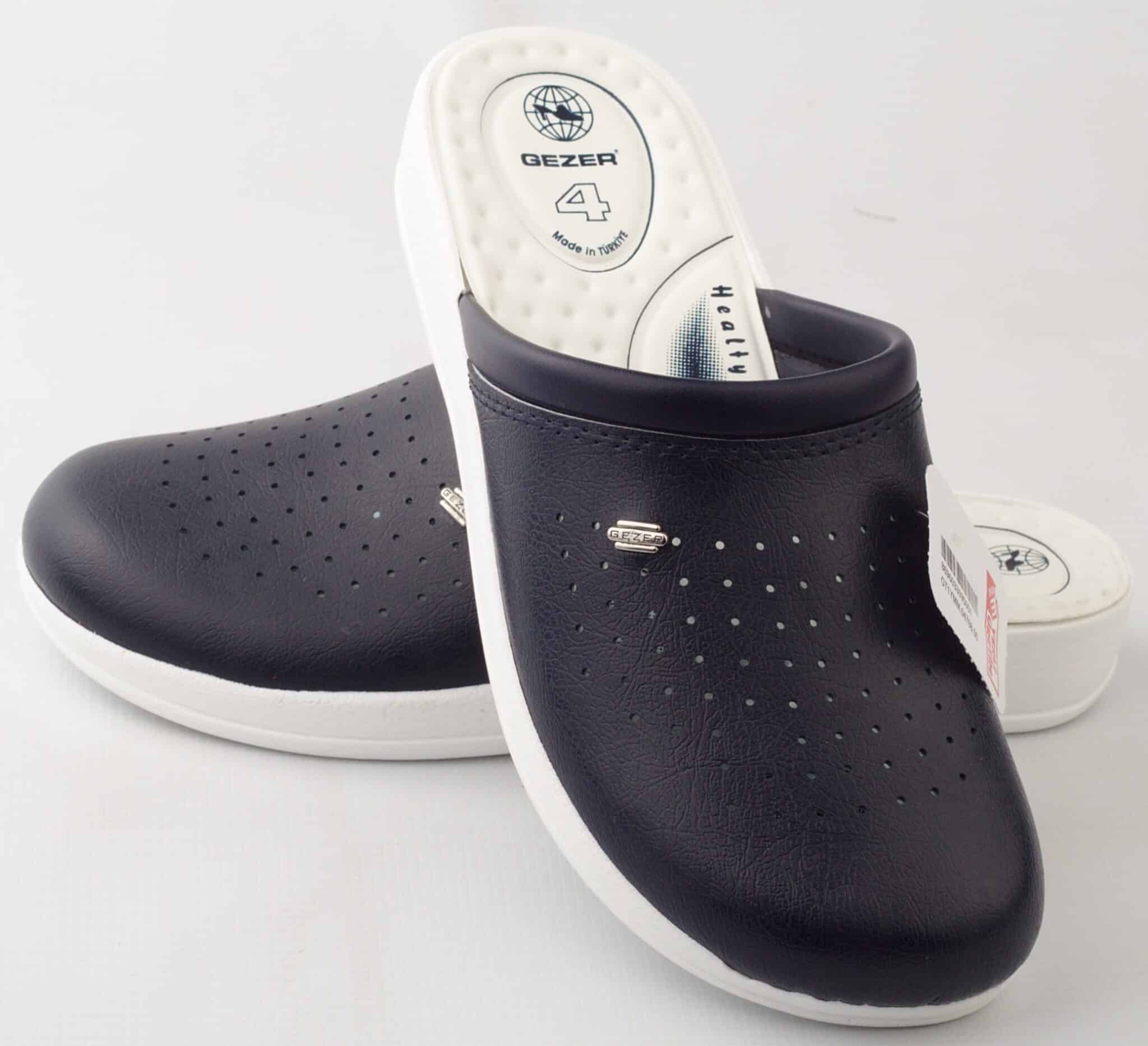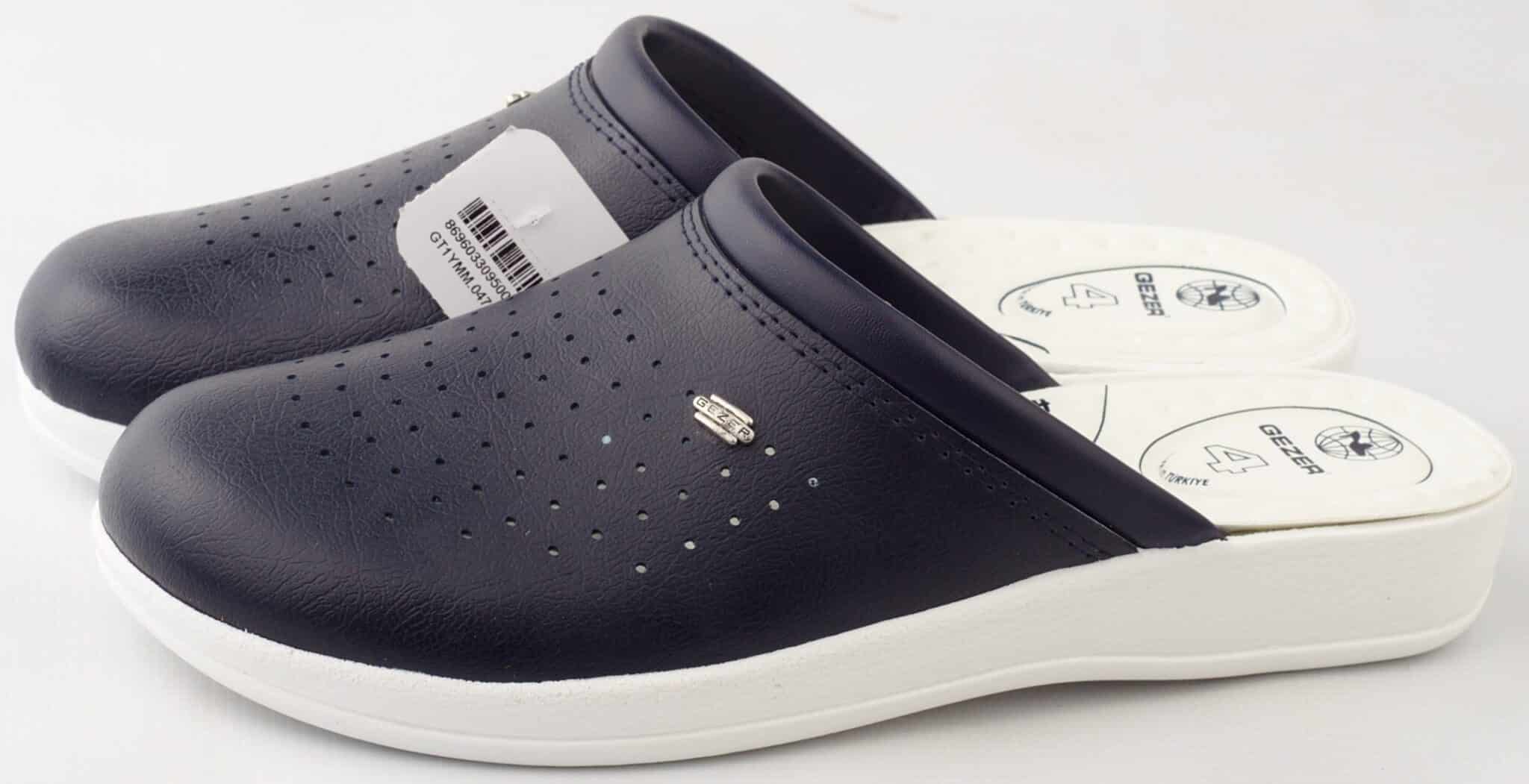 Мъжко тъмносиньо сабо Gezer с анатомична, противохлъзгаща подметка. Саята на сабото Gezer е изработена от перфорирана еко кожа за по-добра вентилация. Сабото е удобно и меко, което гарантира комфорт при дълъг работен ден. Стелката има 4 зони на комфорт за целодневно използване без умора. Тъмносиньо сабо Gezer е изключително подходящо за медицински и санитарни работници, лаборанти, както и кухненски работници. Сабата на турската компания Gezer са проектирани за максимален комфорт при натоварен работен ден. Освен тъмносиньо сабо с марката Gezer при нас може да поръчате и бяло мъжко сабо Gezer.