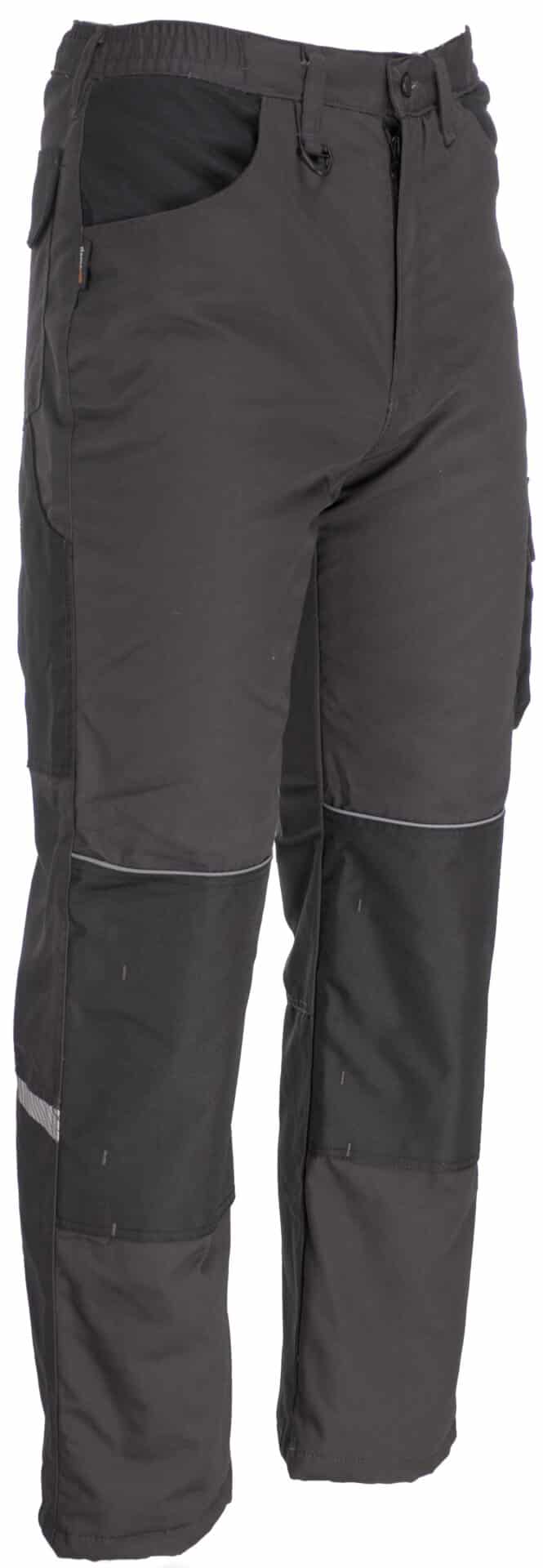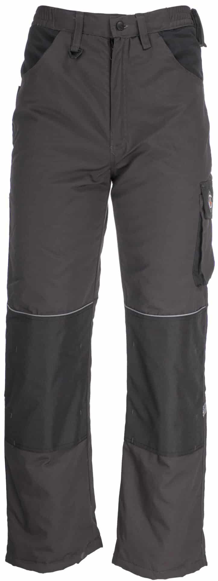 Панталон ватиран модел Емертон в сиво с черно. Моделът е подходящ за работа през зимния сезон. Има общо шест функционални джоба и светлоотразителни елементи. При коленете има също и отвор за поставяне на наколенки. Можете да комбинирате панталон ватиран Емертон с яке ватирано Емертон. От модел Емертон предлагаме още ватиран полугащеризон, както и зимни боти от категория S1 с метално бомбе.