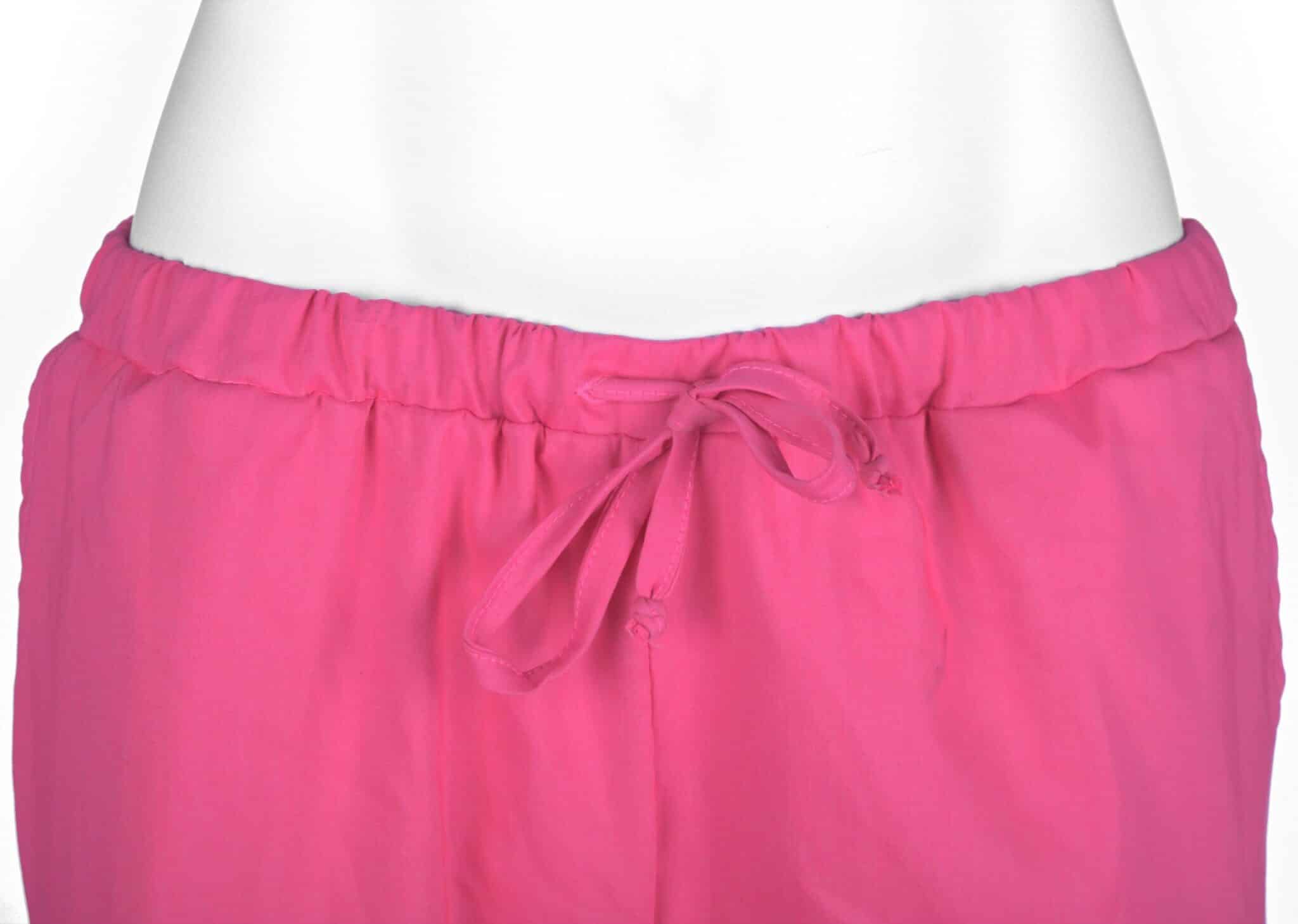 Дамски панталон втален модел в цвят диня. Изработен е от мека материя с лека еластичност. Моделът има ластик и връзки на кръста. Сабден е с два италиански джоба и един заден джоб. Подходящ е за медицински персонал, персонал в детски заведения, за камериерки, сантиратки и други. Можете да съчетаете панталон втален в цвят диня с вталена туника в цвят диня за завършена униформа.