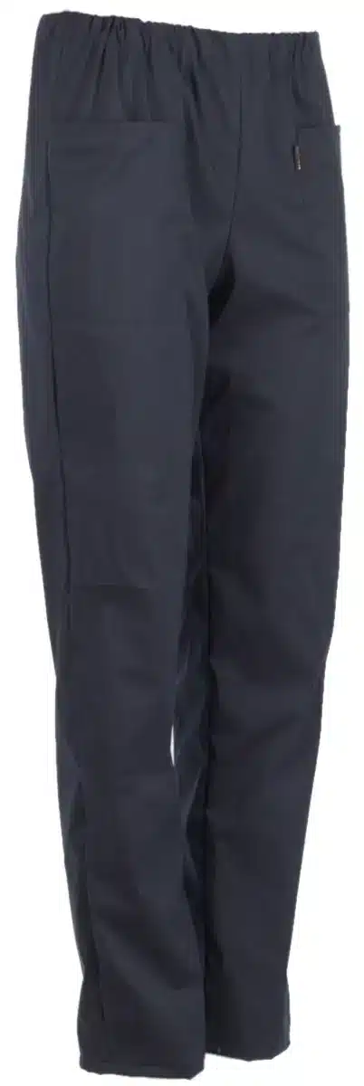 Прав панталон от еластичен плат лукс в тъмносин цвят. Моделът има ластик в кръста и два предни джоба. Подходящ е както за жени, така и за мъже. Подходящ е за медицински персонал, персонал в кухни, както и от фризьори, камериерки, козметички, масажисти и други.