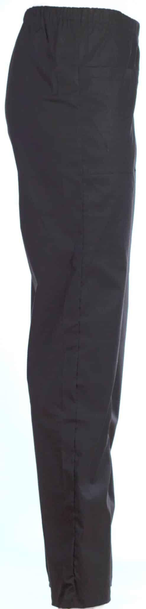 Работен панталон унисекс изработен от памучен плат лукс в черен цвят. Моделът е еднакво подходящ за мъже и за жени. Има ластик в кръста и два предни джоба. Материята е с високо съдържание на памук и е много приятна на допир. Панталон унисекс лукс в черен цвят е еднакво подходящ за работна униформа както за медицински персонал, така и за работници в кухня. Чудесен е за работа също за фризьори, козметици, рехабилклитатори, камериерки и други.
