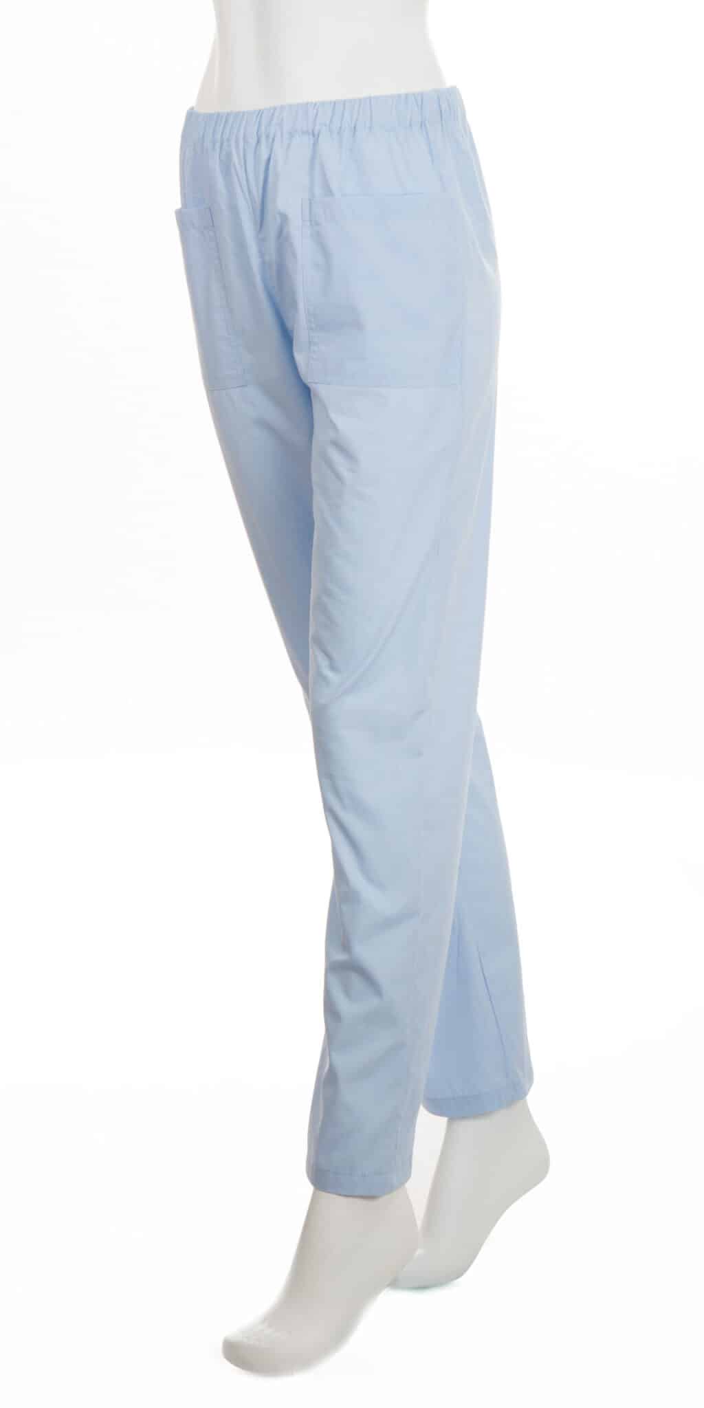 Панталон унисекс светлосин на цвят е еднакво подходяща за мъже и за жени. Кройката му е права и удобна, също има два предни джоба и ластик в кръста. Предлага лекота и удобство при продължителна работа. Съставът на плата издържа на многократно изпиране и осигурява лесно гладене. Панталон унисекс светлосин е подходящо облекло е за медицински работници, санитарни работници, персонал в детски заведения, кухни и др. Комбинирайте този модел панталон със светлосиня туника с копчета, или туника унисекс.