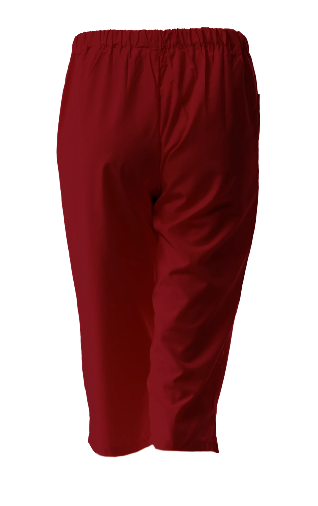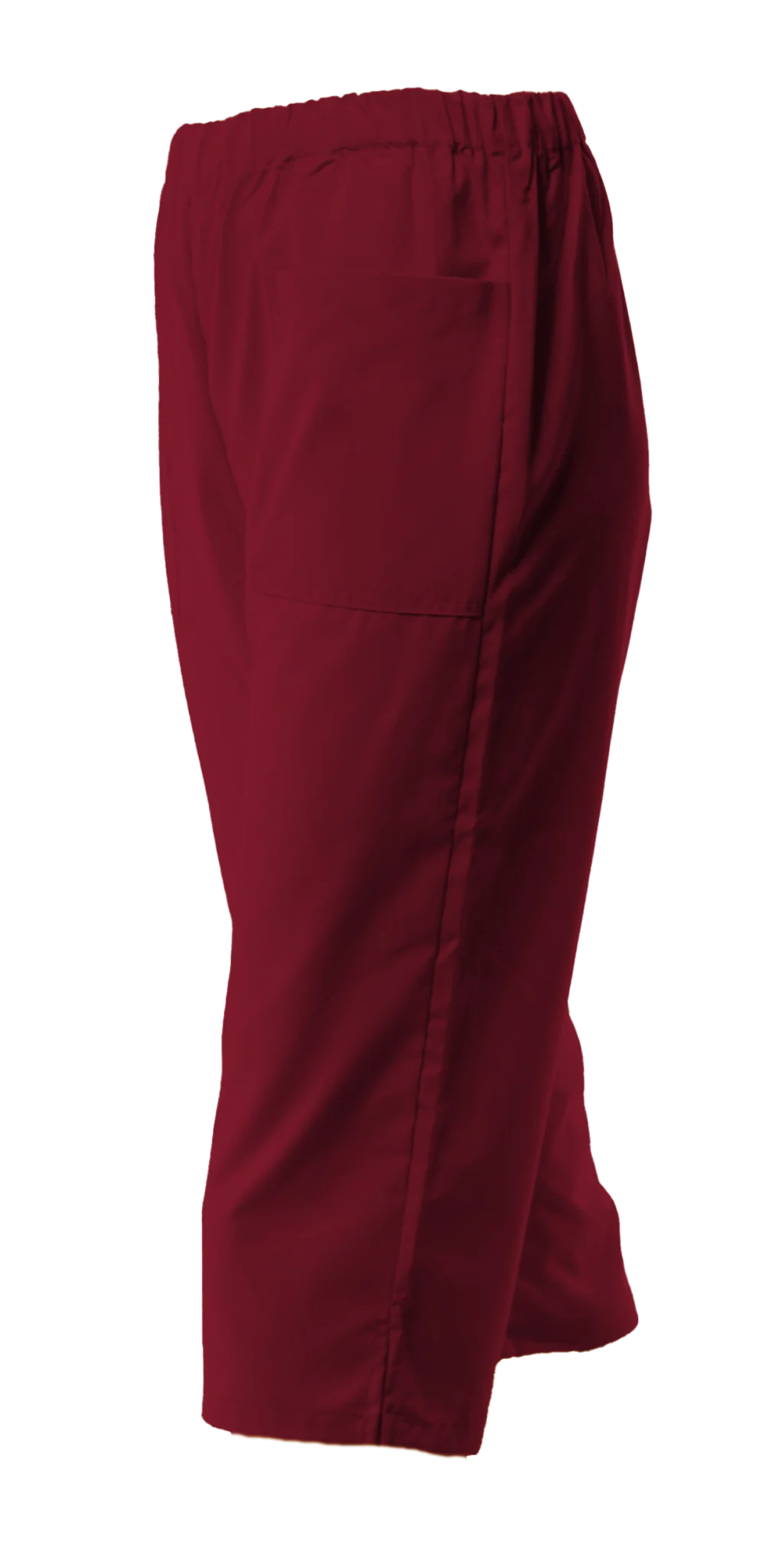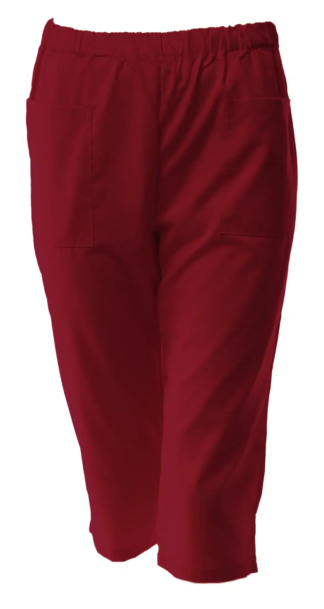 Работен панталон в цвят бордо с 3/4 дължина . Унисекс кройката е еднакво подходяща за мъже и за жени. Моделът има два джоба и ластик в кръста. Предлага лекота и удобство при ежедневна и продължителна работа. Съставът на плата позволява лесна поддръжка. Този панталон е много подходящо облекло при работа свързана с хигиенни дейности и почистване, удобна работна униформа и за персонал в детски заведения, заведения за бързо хранене и други. Панталон унисекс в цвят бордо освен с дължина 3/4 може да поръчате и във вариант със стандартна дължина.