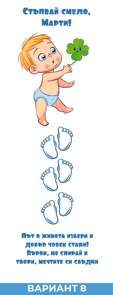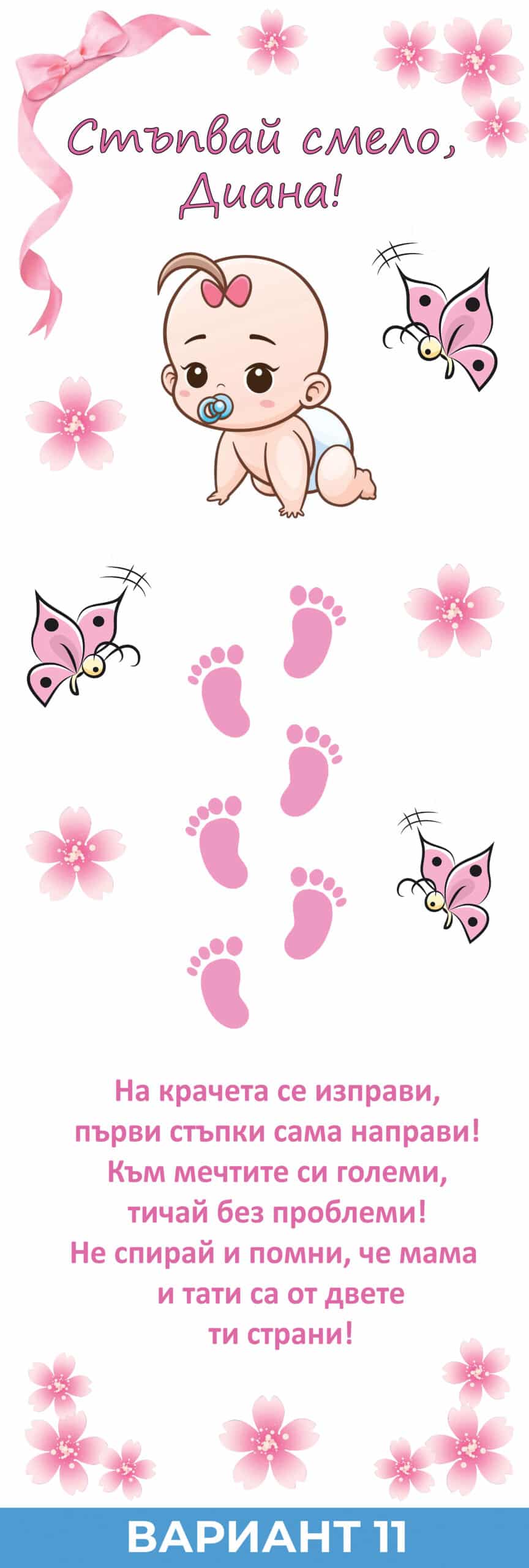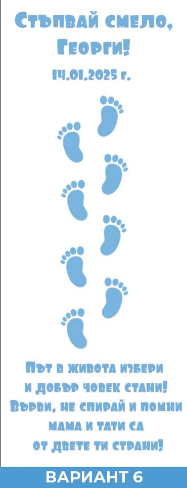 Създайте незабравим момент за първите стъпки на вашето дете с нашето платно за прохождане. Изработено е от бяла основа от плат смес памук и полиестер. Платното е с размери 150 х 60 см, идеално за първите стъпки на детето. Печатът се нанася с висококачествена DTF технология, гарантираща ярки цветове и дълготрайност. Изберете от нашите готови шаблони с красиви дизайни и послания или създайте своя уникален проект, като ни изпратите ваши картинки, снимки и текстове. Вариантите от 1 до 4 на нашето платно за прохождане са със снимка на детето. Ако желаете да поръчате с ваша снимка, ни изпратете изображението на: print@tiki.bg. Платното за прохождане е не само прекрасен спомен, но и основен акцент в традицията. Поръчайте го днес и направете празника на детето си още по-специален! При нас може да поръчате и кърпи за Свето кръщение.