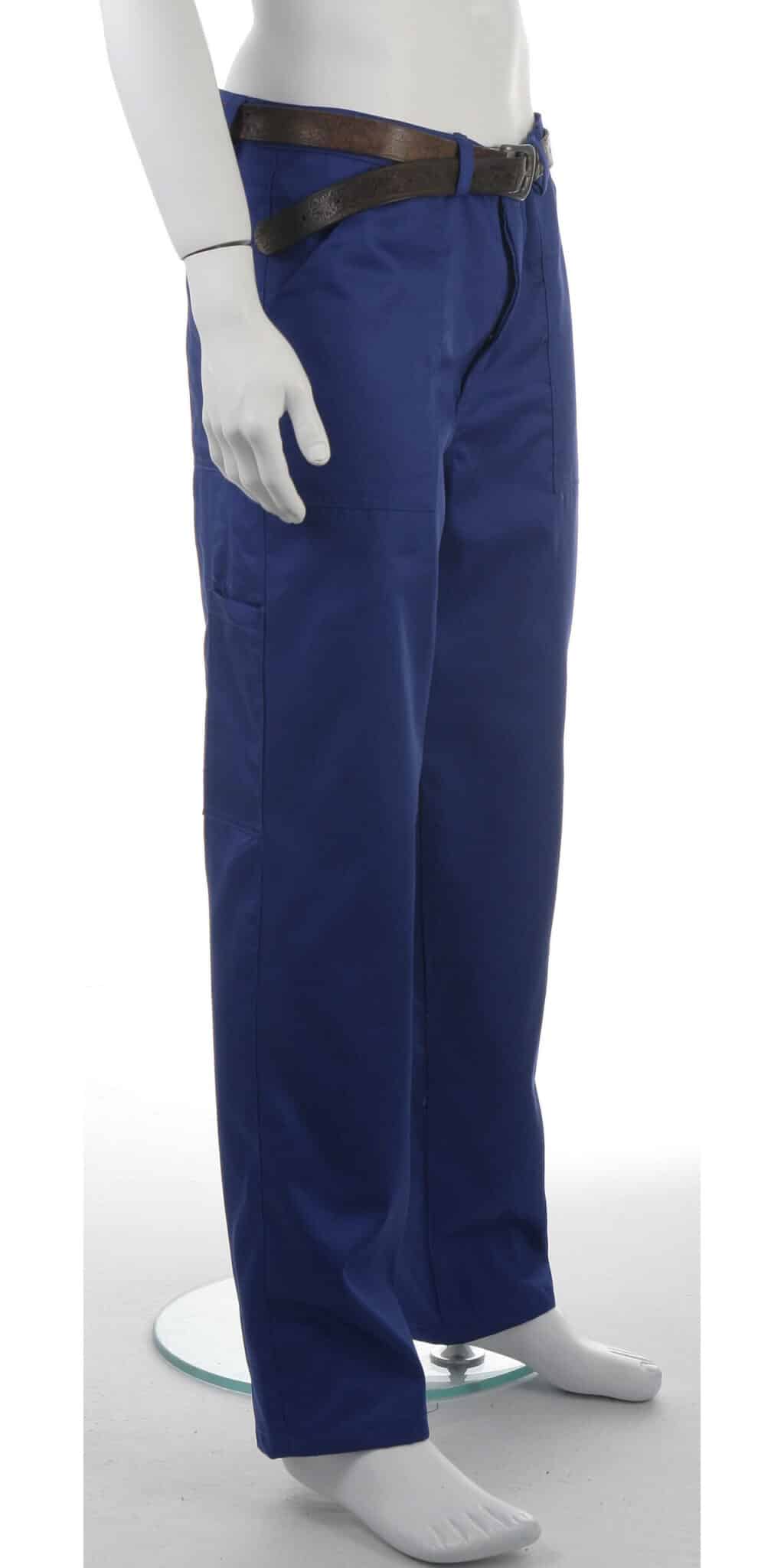 Работен мъжки панталон изработен от плат смес памук с полиестер в син цвят. Материята има голяма здравина и е лесна за пране и гладене. Има класическа кройка, два предни италиански джоба, един заден и един инструментален на крачола. Закопчаването е с копчета и гайки за колан. Предлагаме работен мъжки панталон в син цвят също и от плат 100% памук. Нюансът на синия цвят може да варира. Моля, консултирайте се с нас.