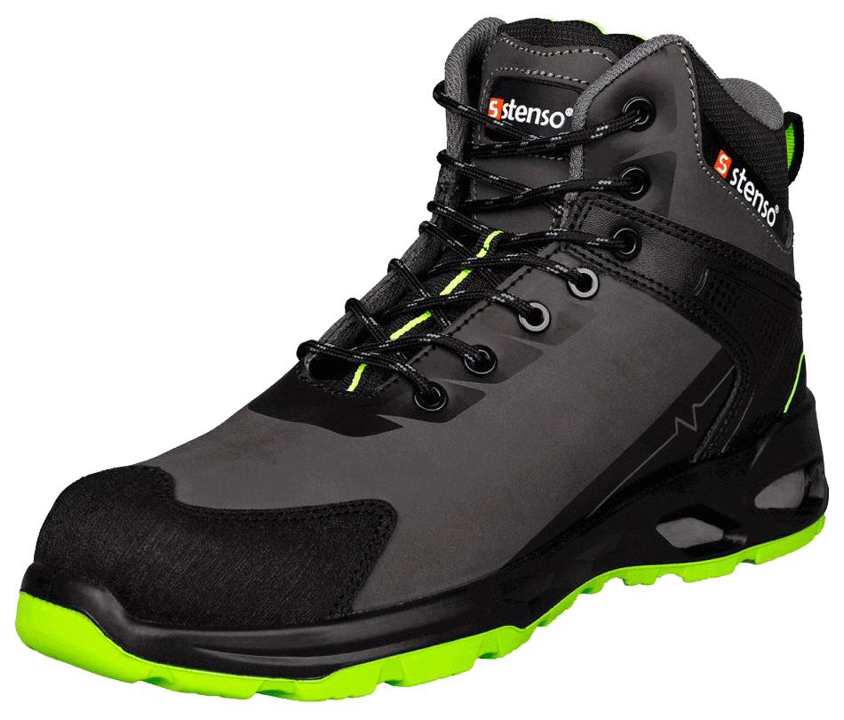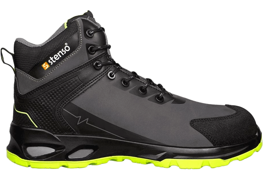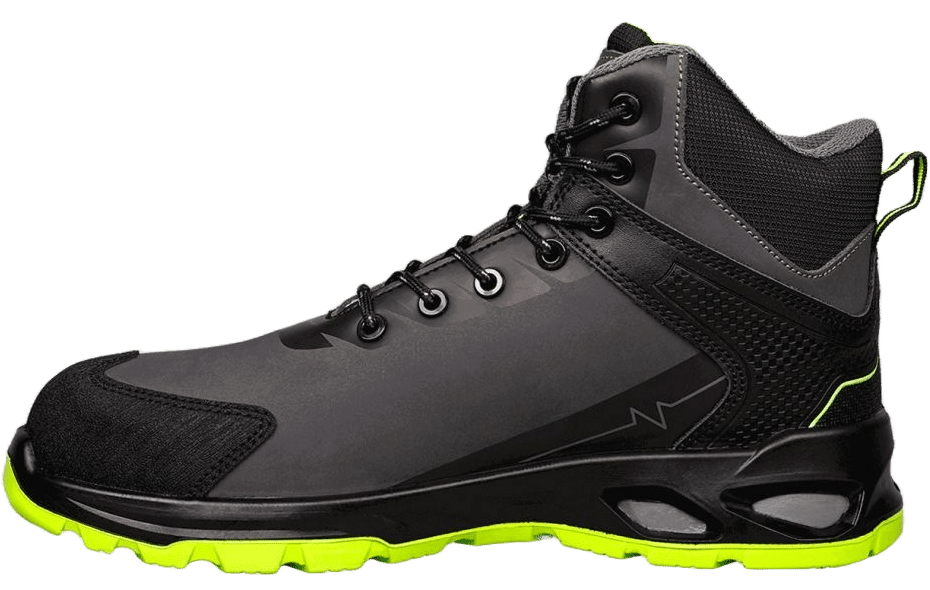 Поръчайте онлайн работни боти Ruler MID 02 SR за гарантирано удобство в работата и ежедневието ви. Моделът е изработен с оригинален спортен дизайн в черно с електриково зелени елементи. Характеризира се с голяма издръжливост, като същевременно предлага отлична защита за ходилата. Конструкцията на този модел е лека, а същевременно може да разчитате на отлична стабилност. Ходилото е изработено от два слоя полиуретан: горен слой PU – по-мек и гъвкав материал, който осигурява удобство, абсорбира ударите и предлага комфорт при дълго носене и долен слой PU – по-твърд и устойчив на износване материал, който гарантира стабилност, здравина и дълъг живот на подметката. Саята е изработена от набук с Oxford, а подплатата е дишаща и не запарва. Стелката е изработена от Hi-poly – висококачествен полиуретан, който се използва за изработката на стелки за обувки.