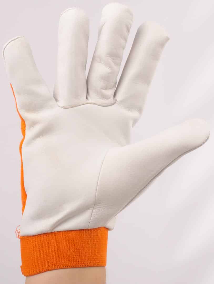 Работни ръкавици, изработени от фина ярешка кожа на дланта, с дишащ гръб от памучен плат и регулируем маншет с велкро. Могат да ви бъдат полезни при работа свързана с пренасяне на тежки предмети, при заваряне и много други. Цветът може да варира.