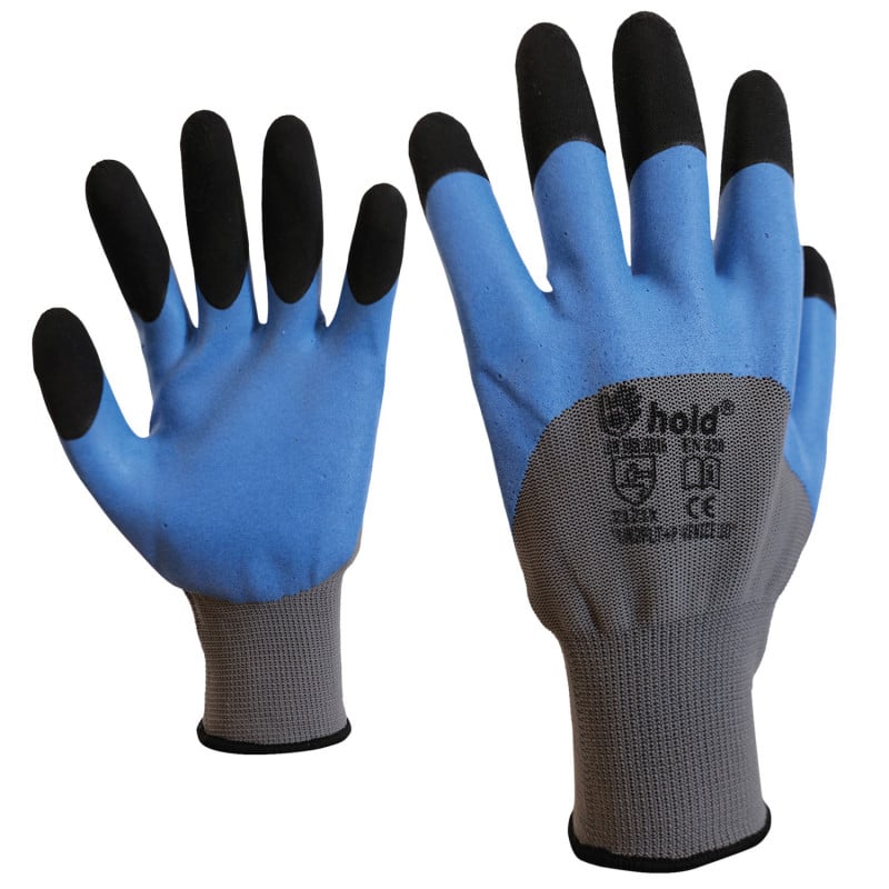 Работни ръкавици модел Венис от категория противосрезни. Изработени са от плетено, безшевно полиестерно трико и са двойно топени в латекс. Моделът се предлага в сиво със синьо и черно. Ръкавиците имат пет пръста и ластични маншети за по-добро прилягане.