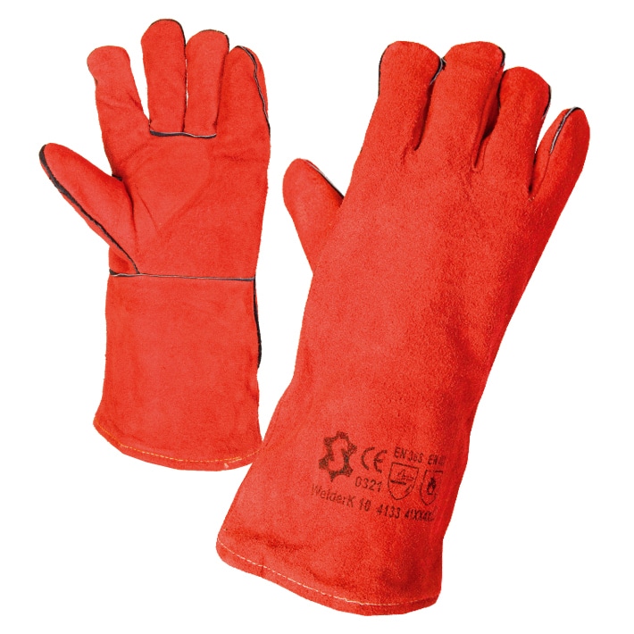 Работни ръкавици заваръчни от велур с кевларени конци. Ръкавиците спадат към категория заваръчни ръкавици. Изработени са от цепена телешка кожа с памучна подплата и са също така топлоустойчиви. Дължината им е 35 см. Ръкавиците са подходящи за заварчици.