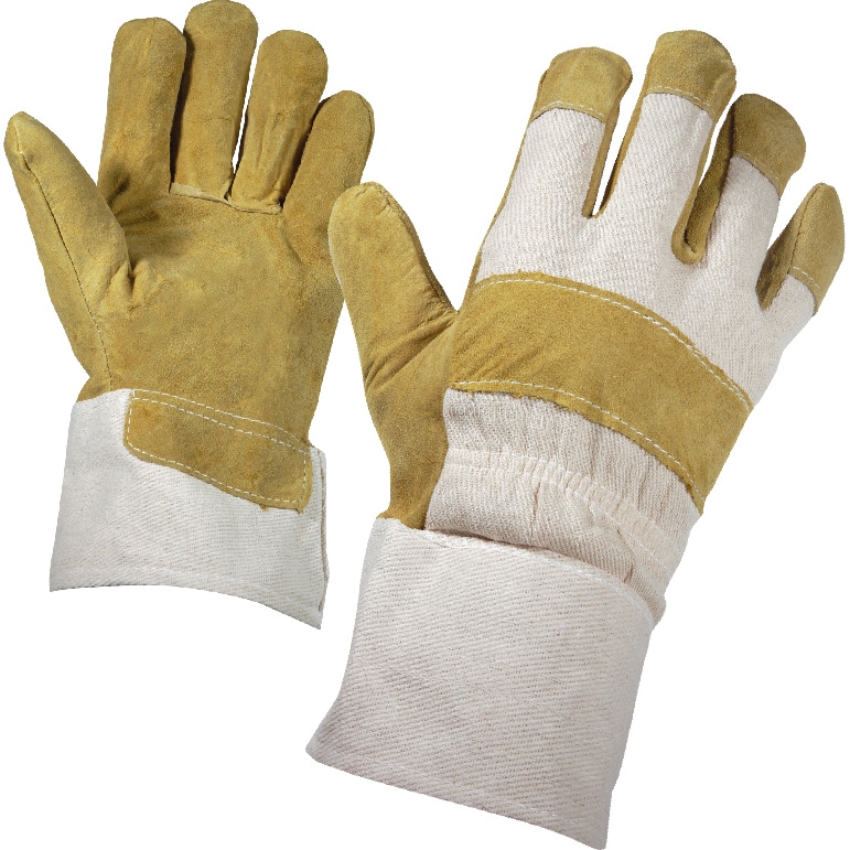 Работни ръкавици от категория студоустойчиви, изработени от велур и плат. Материята е естествена цепена телешка кожа съчетана с плат. Този модел ръкавици от велур и плат имат акрилна подплата, както и подсилени пръсти и длан.