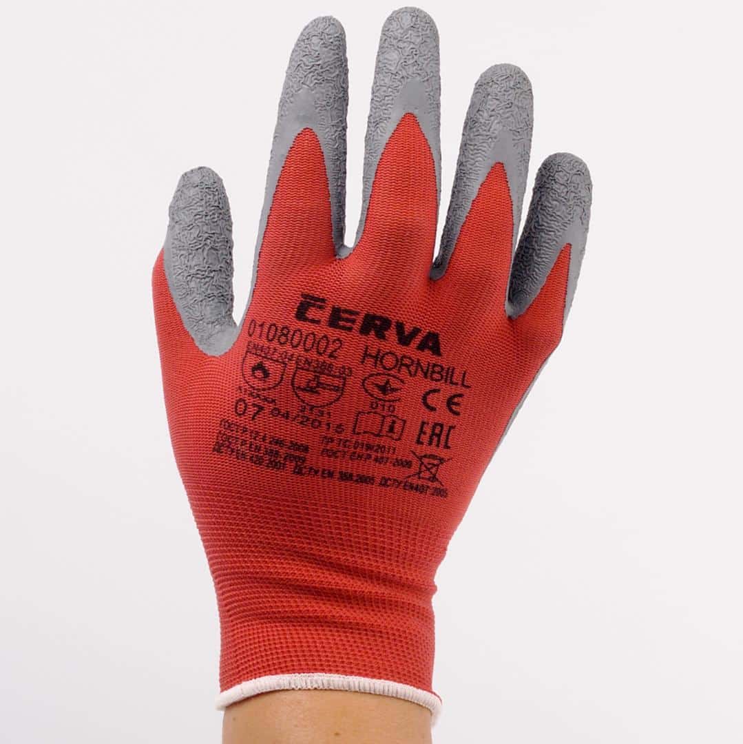 Ръкавици модел Хорнбил от категория противосрезни. Изработени са от безшевно еластичнo поилиамидно трико с дишащ гръб и са топени в латекс. Ръкавиците имат устойчивост при допир с горещи повърхности с температура до 100°C. Поръчайте лесно ръкавици Хорнбил от онлайн магазина ни с изгодна доставка по Еконт и Спиди. Може да се свържете с нашите конуслтанти на посочените телефони и имейл.