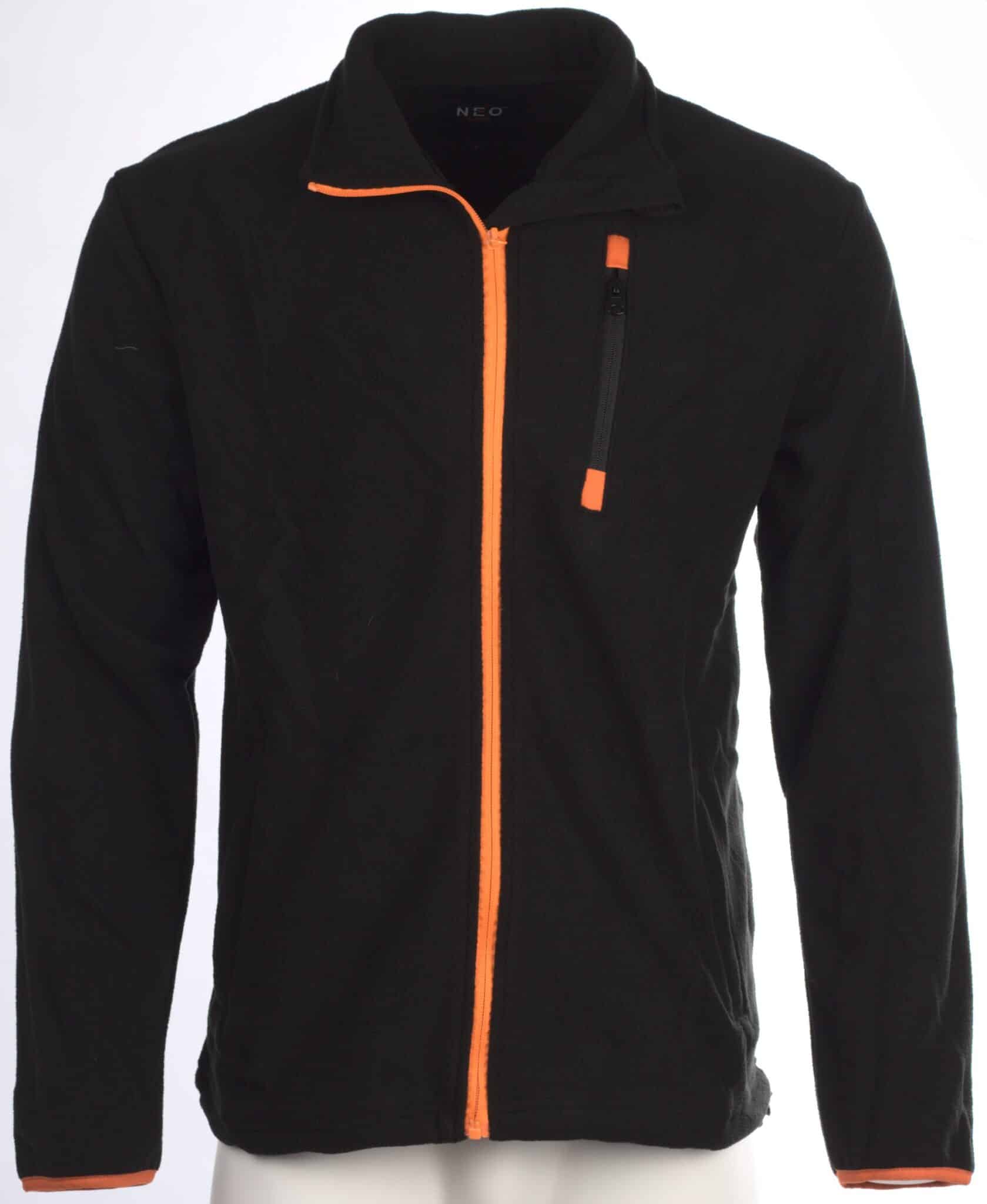 Суичер модел Нео от полар в черен цвят с оранжеви елементи. Моделът се закопчава с цип отпред и има общо три вертикални джоба, които също се закопчават с ципове. Ръкавите на суичера са завършени с ластик. В долната си част суичерът също има ластик, с помощта на който широчината му може да бъде регулирана. Моделът има висока яка, която уплътнява добре шията при условия на вятър и въздушно течение. Суичер полар Нео е много подходящ за работно облекло през по-голямата част от годината. Можете да си осигурите комфорт с него и в ежедневието у дома. Можете да разгледате и останалите ни предложения за суичери и блузи с дълъг ръкав от тук. Освен суичер Нео, предлагаме още яке, полугащеризон и панталон Нео.