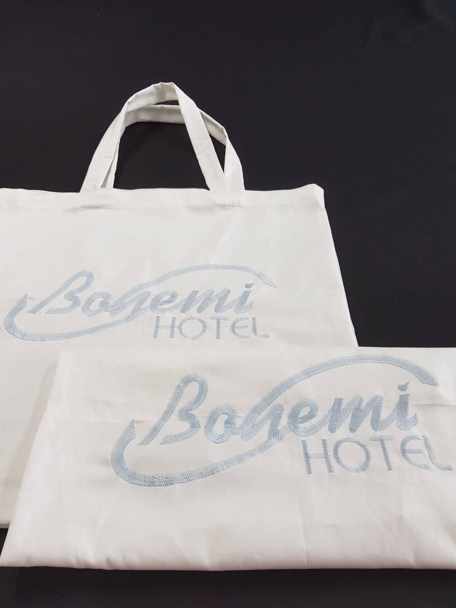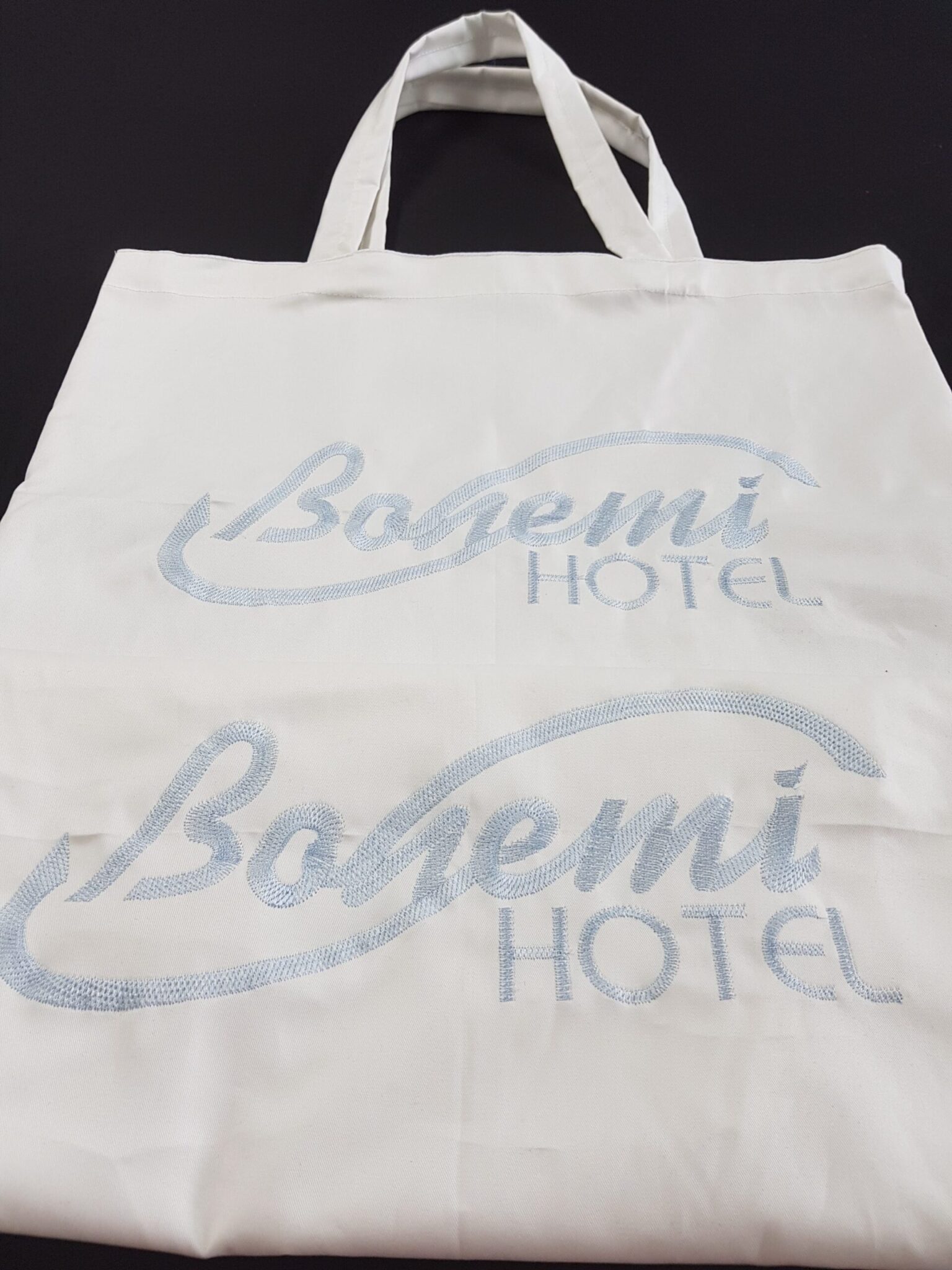 Текстилна торба с рекламна бродерия/печат на вашето лого. Обявената цена е за текстилна торбане включва брандиране. Цената на текстилната торба с бродерия/печат може да варира в зависимост от размера и цветността на изображението. За брандиране на работното ви облекло, или аксесоари, предлагаме изработка на компютърна бродерия. При нас можете да изобразите чрез бродерия и печат по много оригинален и красив начин фирменото си лого, или персонални надписи върху дрехи, шапки, или знамена например. Цветовете и размерите на надписите и логата са по задание на клиентите ни. При нас имате възможност за брандиране на хавлиени изделия за употреба в хотели, спа центрове, козметични студиа и други.