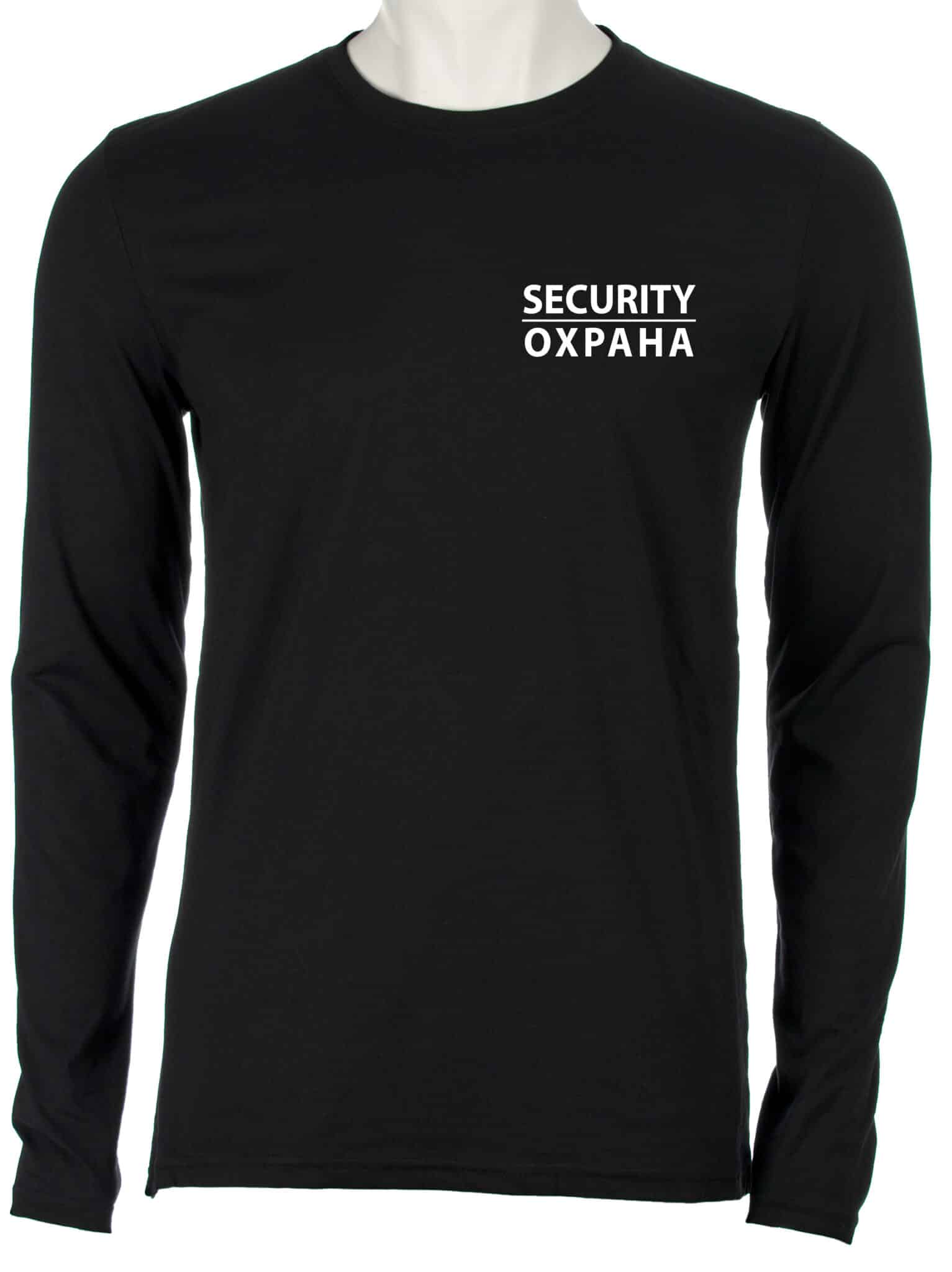 Представяме ви тениска Охрана с дълъг ръкав черна на цвят. Тениската е изработена от 100% памук. Печатът е DTF. Това е съвременна технология за печат, при която се постига изключително качество и детайлност на отпечатъка, а също така и висока издръжливост при пране и срещу надраскване. В предната лява част има двуезичен надпис – SECURITY/ОХРАНА. За надписа на гърба имате възможност да избирате между 2 вида печат – само ОХРАНА или само SECURITY. Тениска Охрана с дълъг ръкав – черна освен да поръчате онлайн, може да откриете и в нашите фирмени магазини в страната.