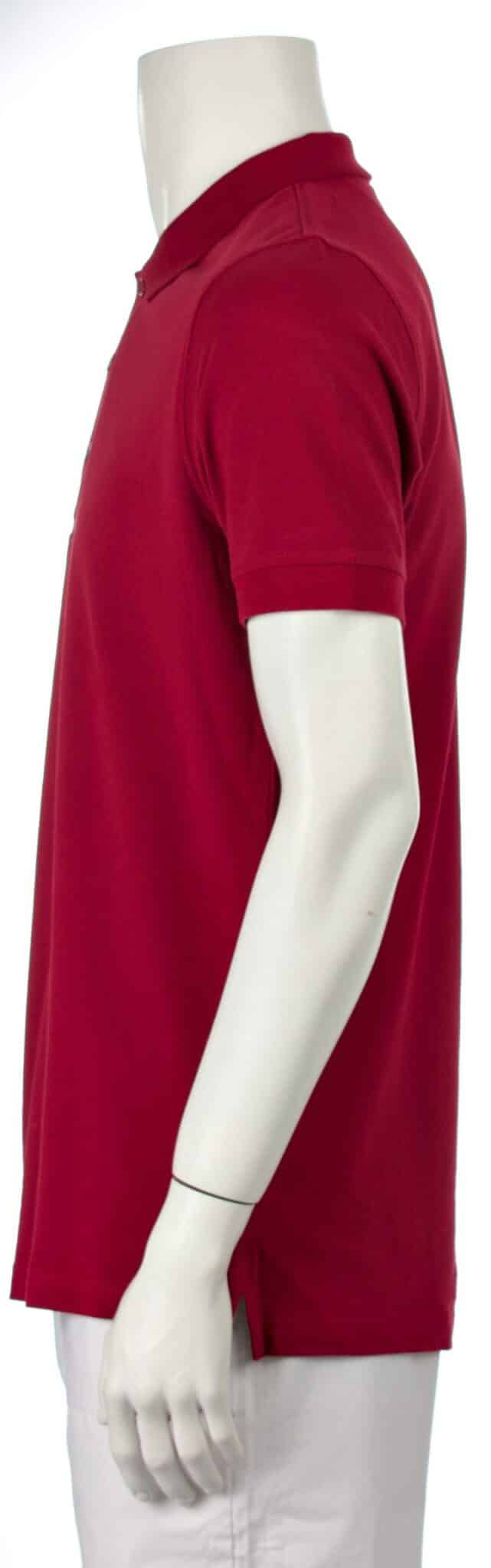 Памучна мека тениска с къс ръкав и яка в цвят бордо. Моделът е с права и комфортна кройка. Няма джобове, има три копчета отпред на гърдите. Материята осигурява удобство и не запарва в топлите дни от годината. Тениската е подходяща както за лична употреба в ежедневието, така и за работна униформа. Предлагаме богата гама от тениски с къс ръкав. Също така при нас ще откриете подходящи къси панталони и шапки с козирка за завършена лятна работна униформа.