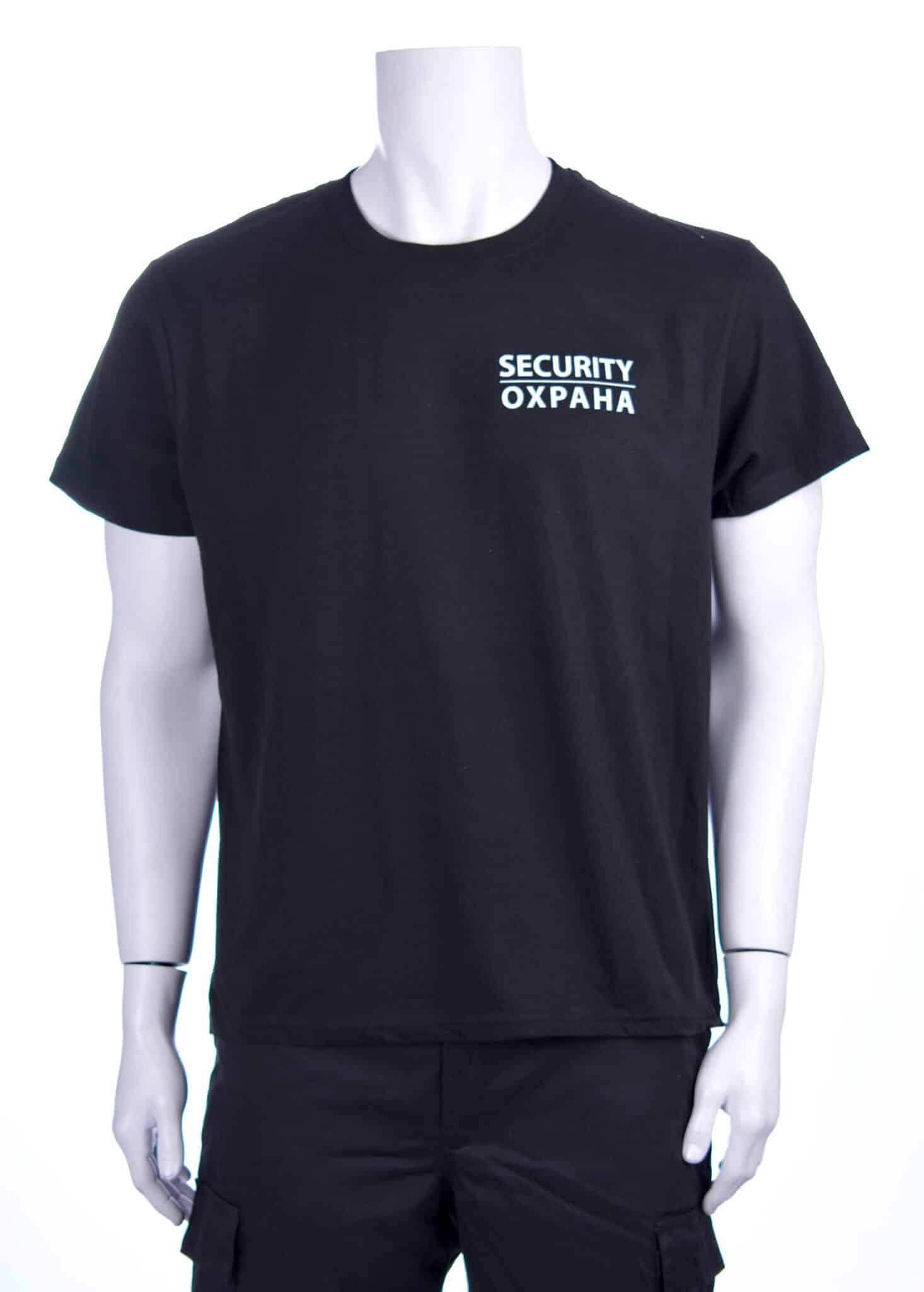 Тениска за охранители с надпис Охрана на два езика, изработен чрез технологията DTF. Тениската е със състав 100% памук. Изключително подходяща е за служители в охранителния сектор. Те са изработени от висококачествен памук, който е мек и удобен за носене, а надписът е изработен чрез бял DTF печат за по-добра видимост и дълготрайност. Тази технология предлага отлична устойчивост при пране и надраскване. Печатът е дигитален и като такъв, чрез него може да се постигне изключително прецизно фотореалистично качество.Отличната видимост на тениските с надпис „Охрана“ помага на хората да разпознават лесно охранителите и да знаят, към кого да се обърнат, ако има нужда. При нас можете също така да поръчате тениски с яка, върху които да добавим името на охранителната фирма чрез печат или компютърна бродерия. Предлагаме и брандиране на униформи за охранители с логото на охранителната фирма.