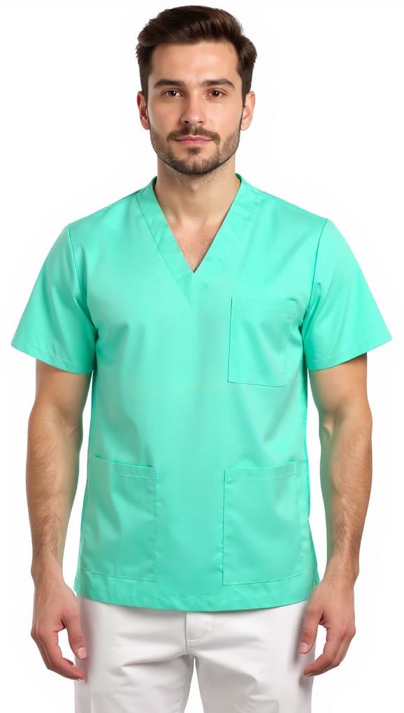 Медицинска туника унисекс в цвят резеда. Моделът е изработен с права свободна кройка и заострено деколте. Има общо три предни джоба. Еднакво подходящ е за мъже и за жени. Отлично предложение за работна униформа на служители в медицински заведение, санитари, за персонал в детски заведения, козметични салони и много други. За завършена работна визия може да съчетаете туника унисекс в цвят резеда с медицински панталон в резеда, както и с медицинско сабо. При нас ще намерите медицински работни туники в голямо цветово разнообразие.