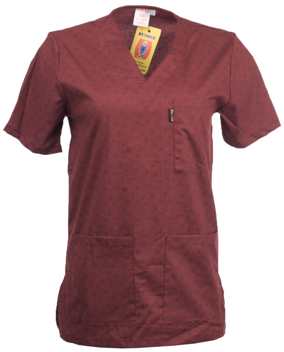 Туника унисекс с точки бордо, е изработена от 100% памучен плат. Изключително подходяща за медицински персонал. Предлага се и в тъмносин цвят на точки.