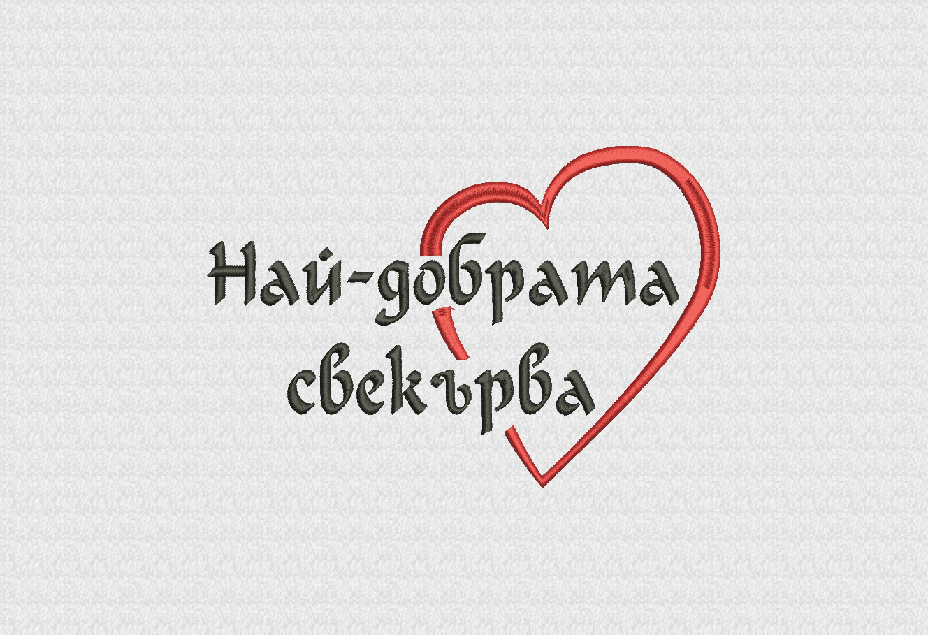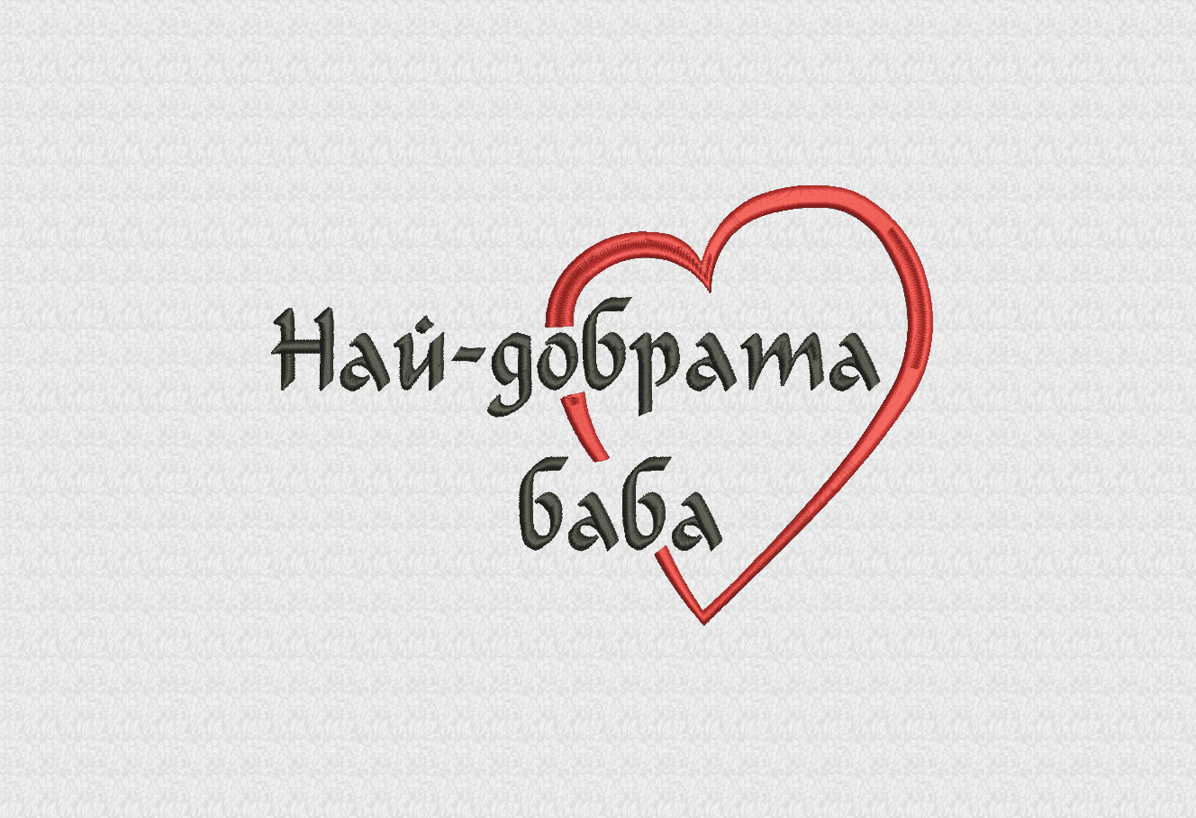 Хавлиена кърпа от 100% памук с плътност 450 г/м2 в бял цвят, с размер 50/90 см с поставена компютърна бродерия със сърце и надпис Най-добрата … или Най-добрият…, където по избор на клиента допълваме майка, баба, свекърва, сестра, госпожа, татко или дядо според това за кого е предназначена кърпата. Хавлиена кърпа Най-добрата … е чудесен подарък, който може да поднесете дори и без повод на любимите си близки. При нас можете да поръчате и дамска бяла тениска  в желан размер, с надпис Най-добрата …или Най-добрият… , поставен чрез дигитален печат. Предлагаме също така подаръчни комплекти в няколко варианта.