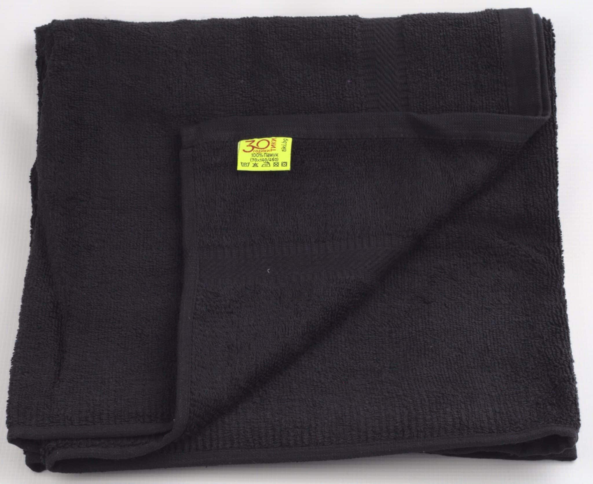Памучна хавлиена кърпа черна на цвят. Размерите на кърпата са 70х140 см, а плътността й е 450 г/м2. Силно търсена е заради практичния си цвят и голямата си издръжливост. Подходяща е за употреба в хотели и къщи за гости, в спа центрове и в салони за красота. Отлична е и за домашно ползване, или на плажа. Кърпата има много добра попивателна способност и е мека и приятна на допир. Предлагаме този модел хавлиена кърпа също и в размер 50х90 см.