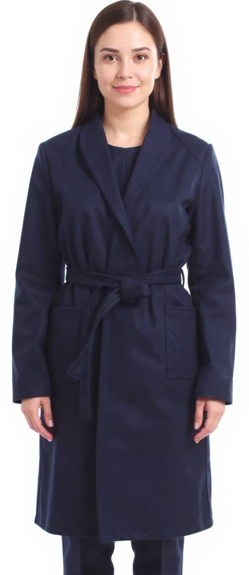 Халат медицински изработен от 100% вълна в тъмни цветове.  Моделът е тип ,,прегърни ме“ и има паднало рамо и един джоб от лявата страна. Изключително удобен и практичен, широчината му може да се регулира с колан на кръст. Кройката е широка и универсална, което прави артикула подходящ едновременно за мъже и за жени. Поръчайте лесно онлайн халат медицински вълна в тъмни цветове с изгодна доставка по Еконт или Спиди. Предлагаме брандиране на работни облекла. Имате възможност за изработка на фирмено лого, или надпис чрез компютърна бродерия , или дигитален печат.