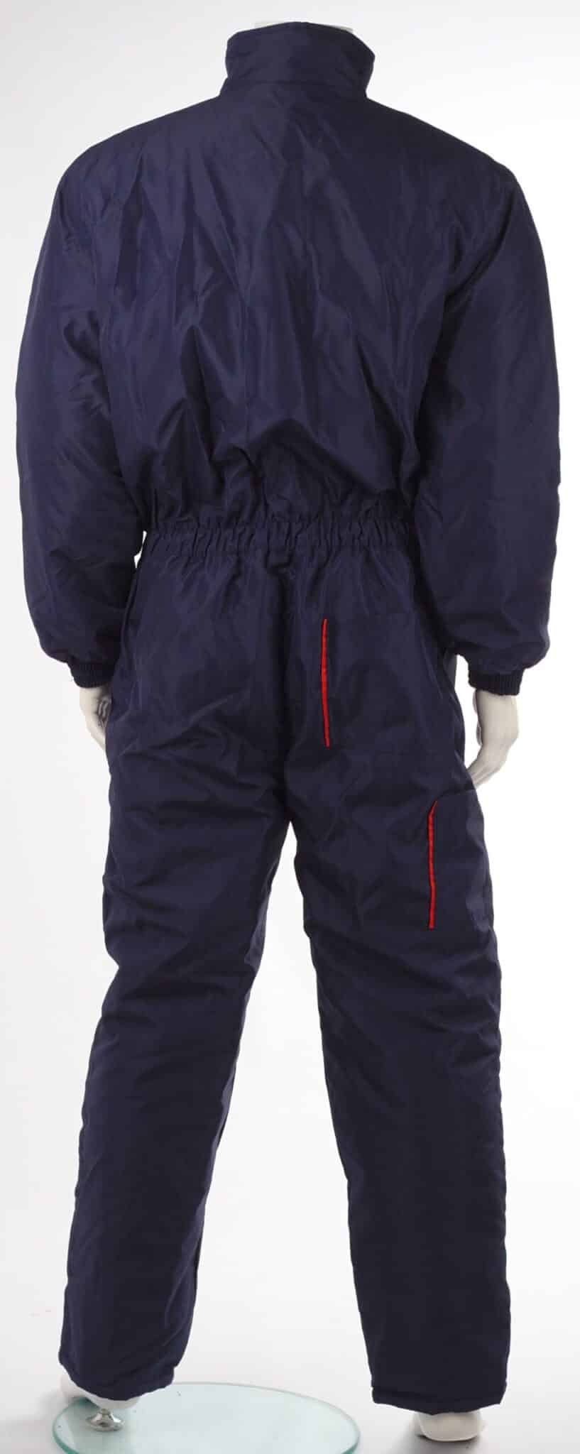 Цял работен гащеризон ватиран модел от промазка в тъмносин цвят с червени елементи. Има удобна и ергономична кройка. Моделът е изработен с общо шест джоба. Има два горни джоба на гърдите с капаци и велкро. Оборудван е с още два обемни предни джоба, един заден и един инструментален джоб на крачолa. Закопчаването е отпред с цип покрит с пластрон, а на кръста има ластик. Ръкавите са завършени с ластични маншети за по голяма безопасност при работа с машини. Този модел е изключително подходящ за работници в автосервизи, както и за хора работещи навън през зимата. Цял гащеризон ватиран от промазка може да поръчате лесно онлайн. Предлагаме този артикул и във вариант от материя 100% памук. Ползваме услугите на куриери Спиди и Еконт с изгодни цени за доставка.