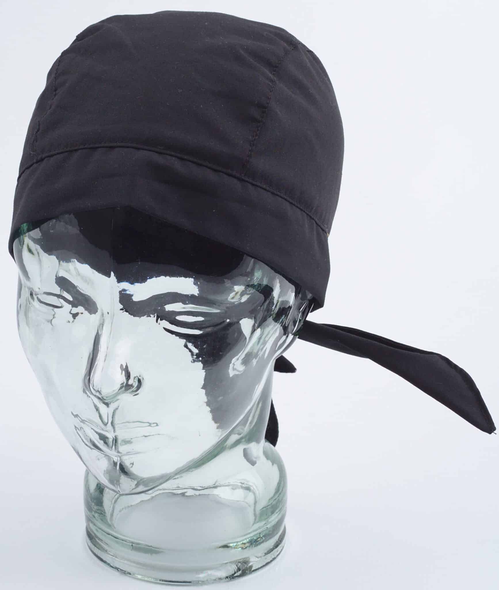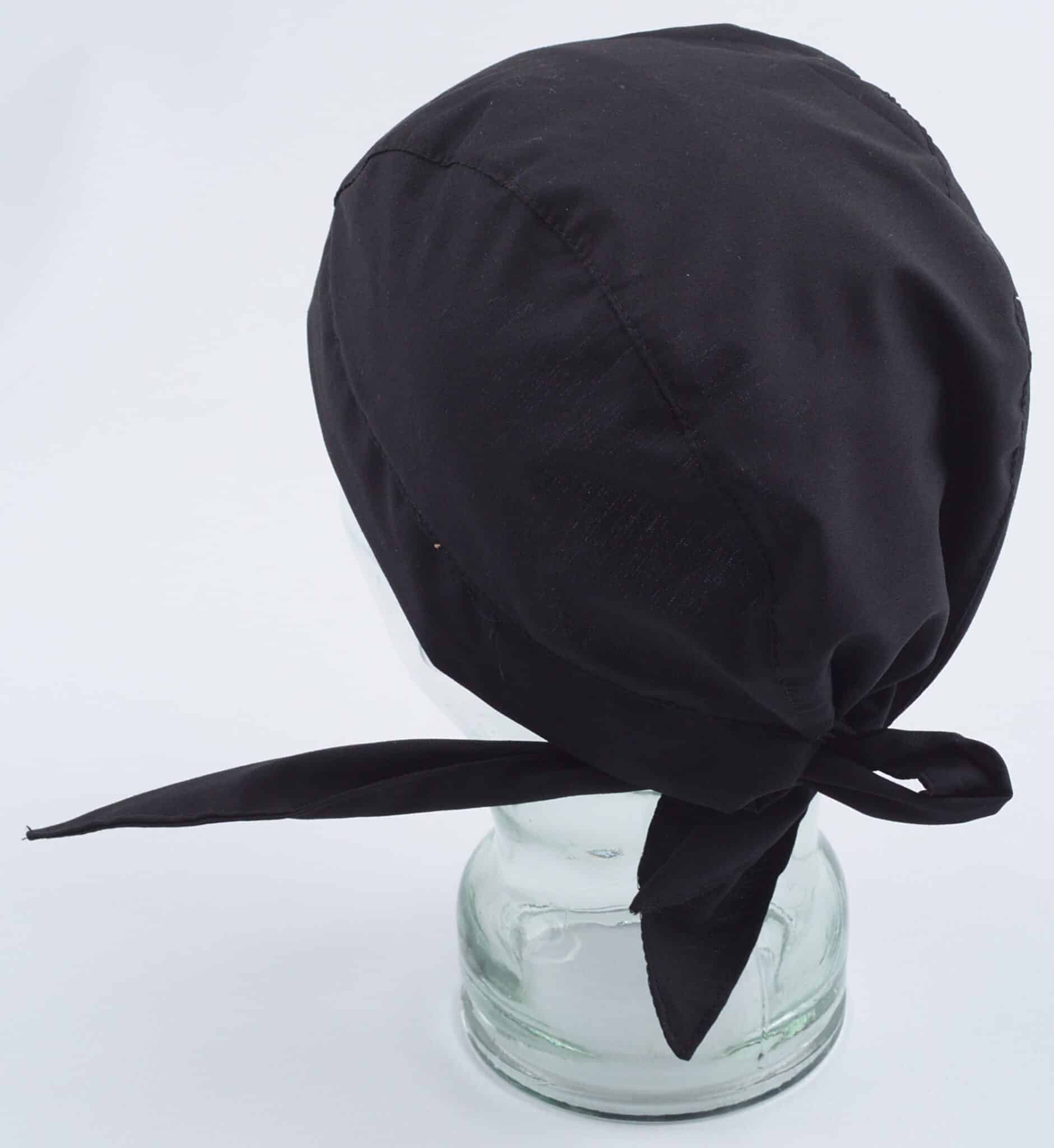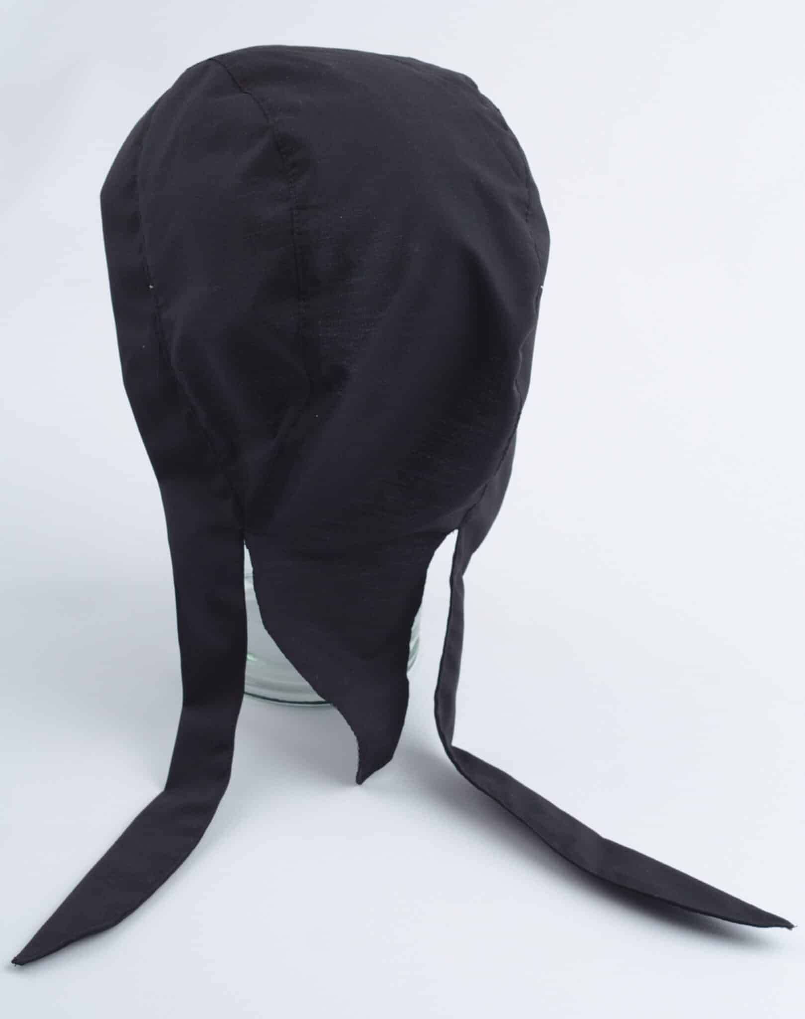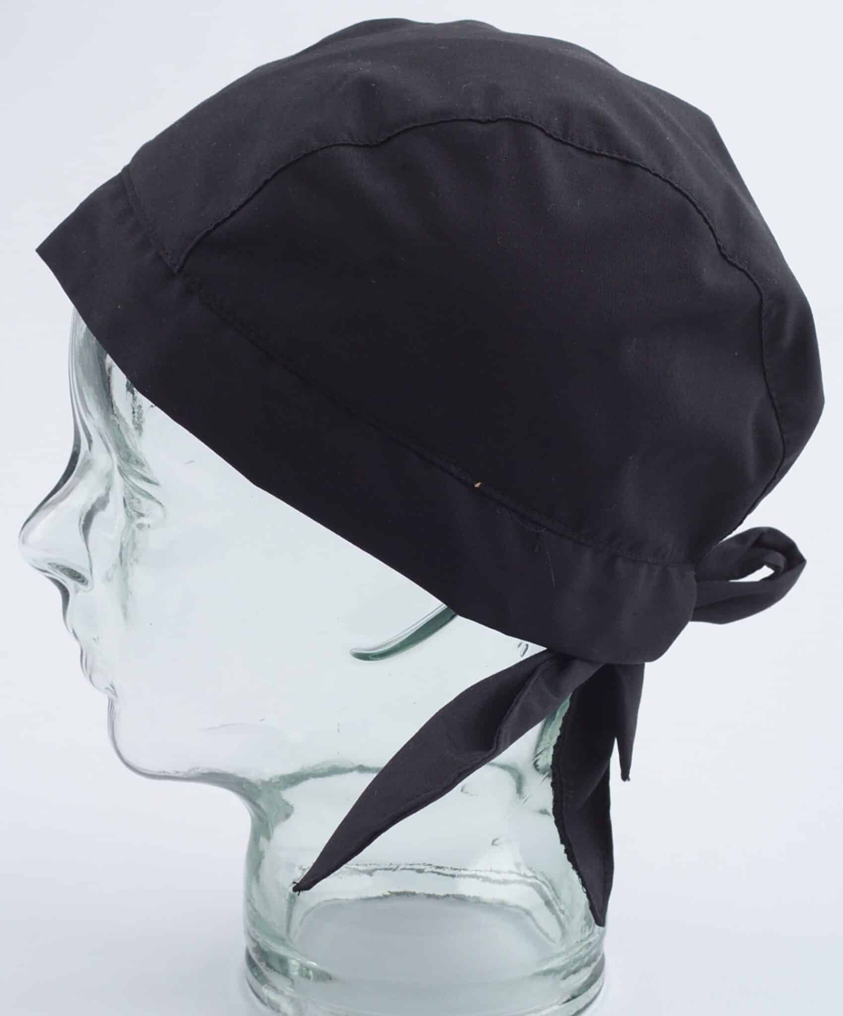 Работна шапка тип бандана в черен цвят. Изработена е от плат смес от памук с полиестер. Шапката е много лека и удобна. Широчината й се регулира с връзки отзад. Шапка бандана е подходящ аксесоар за работници в кухня и персонал в заведения за бързо хранене. Също така банданата може да бъде добавена към униформата на сервитьори, работници в месарски магазини и още много други. По предпочитание на клиента бихме могли да изработим бандана в различни цветове по индивидуална заявка. Можете да рекламирате успешно бизнеса си, като се доверите на нас за изработка на компютърна бродерия с фирменото ви лого върху банданата. Информирайте се в детайли относно изработката на компютърна бродерия.