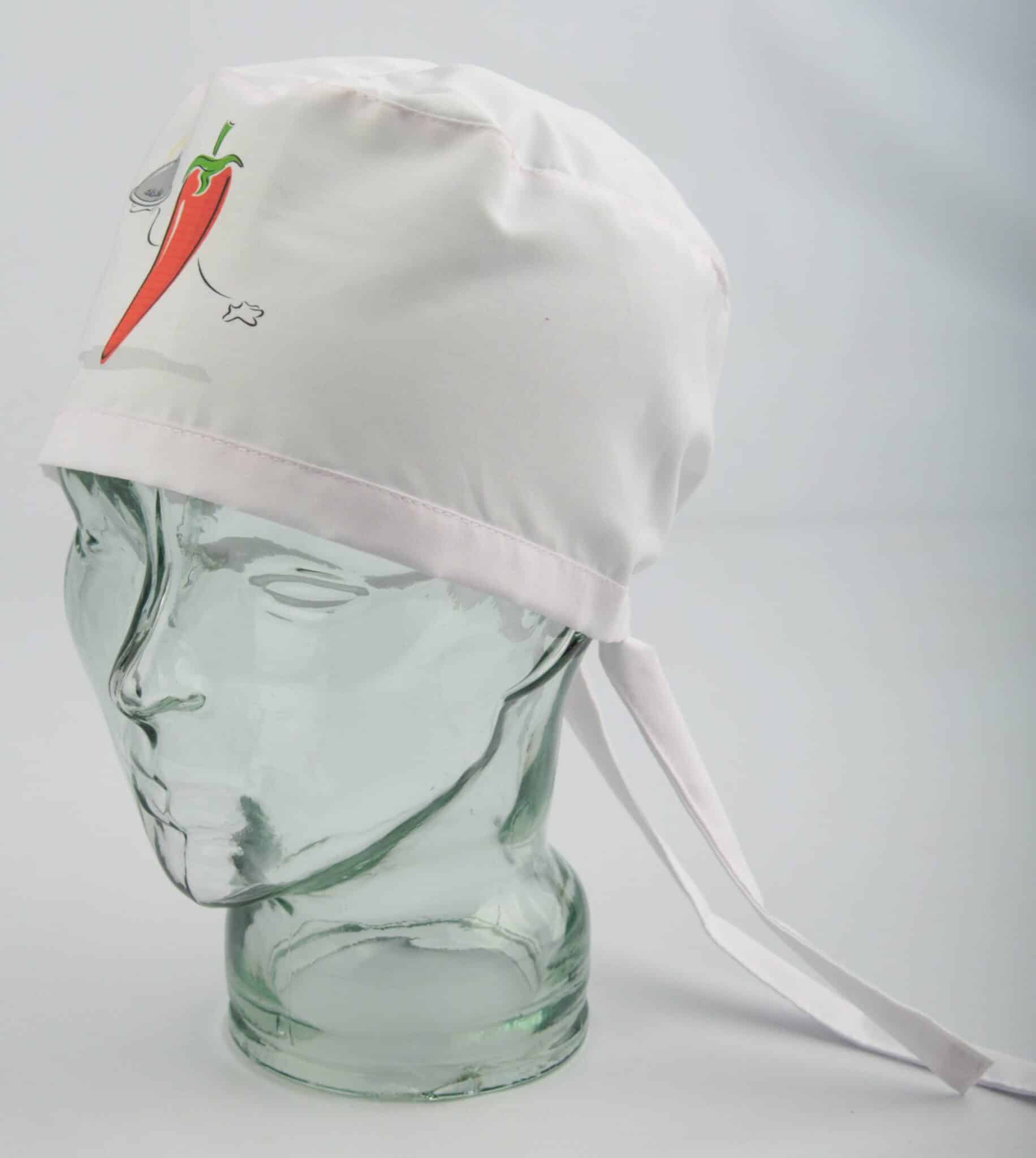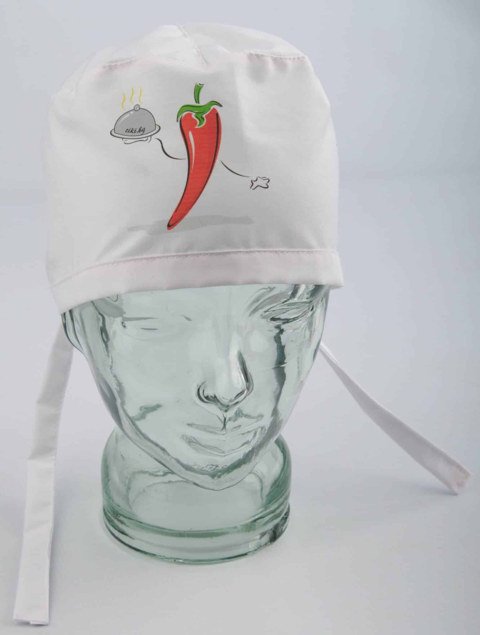Шапка за готвач бяла на цвят с цветен DTF печат. Моделът е с универсален размер, широчината се регулира с връзки отзад. Материята е комбинация от полиестер и памук и е много лесна за поддръжка. Шапка готвач бяла с печат изработваме също в черен и червен цвят с различен дизайн на печата. Използваме 2 вида дигитален печат: DTF и DTG. Отпечатъка на шапка готвач бяла е изработен чрез DTF технология. Чрез нея се постига изключително качество и наситеност на изображението, както и устойчивост при пране и надраскване.При нас можете да изберете от голямо разнообразие на готварски шапки, както и престилки, с които да ги съчетаете.