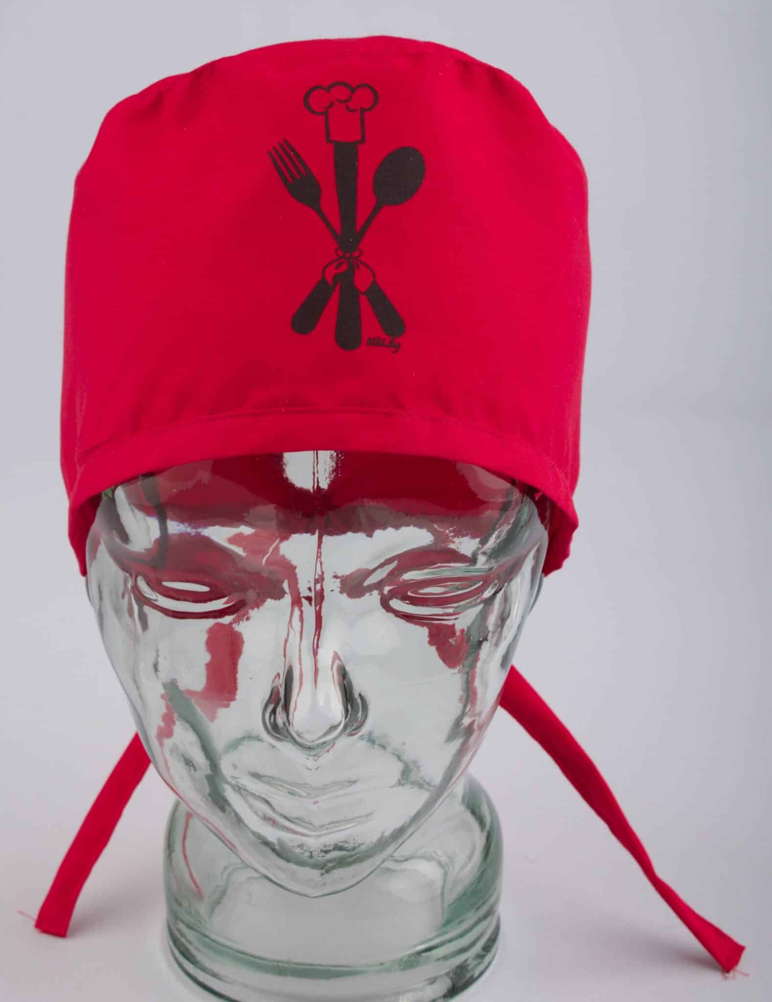 Шапка за готвач – червена с печат