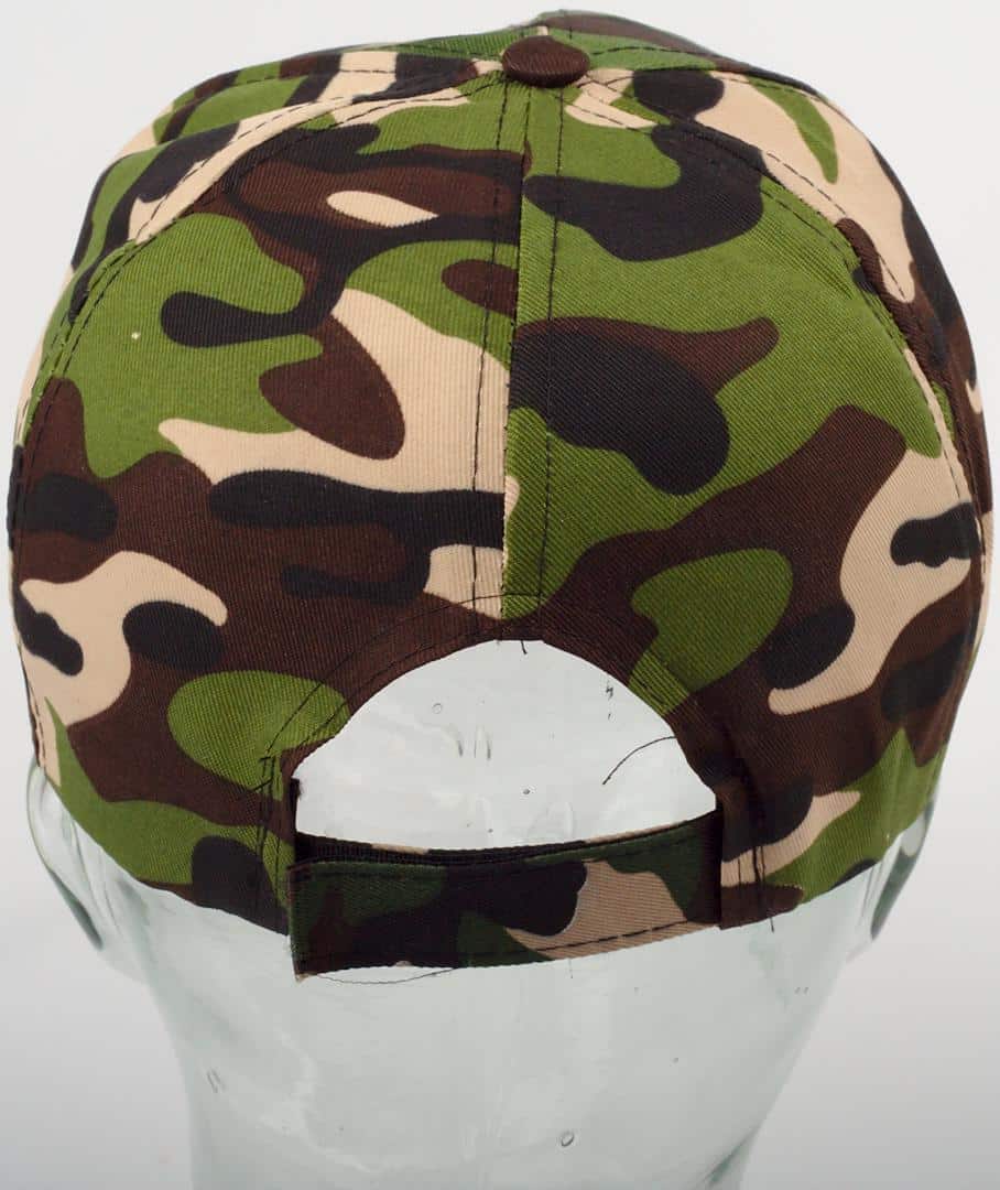Шапка с козирка тип „бейзболна“ в шарка камуфлаж изработена от 100% памук. Подходяща e за ловци и рибари. Не запарва, проветрява главата и е изключително мека и удобна. Обиколката й се регулира за максимален комфорт.