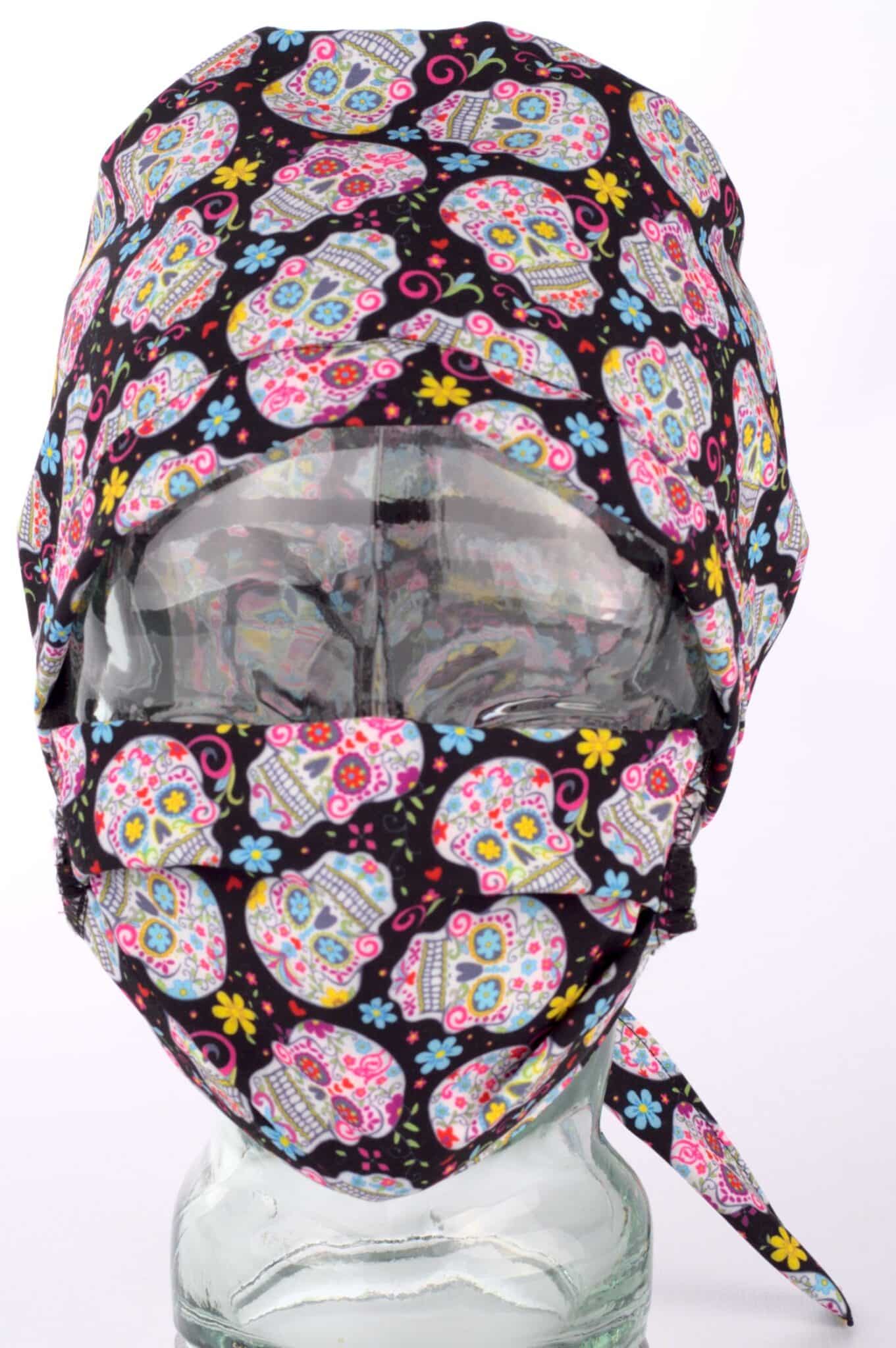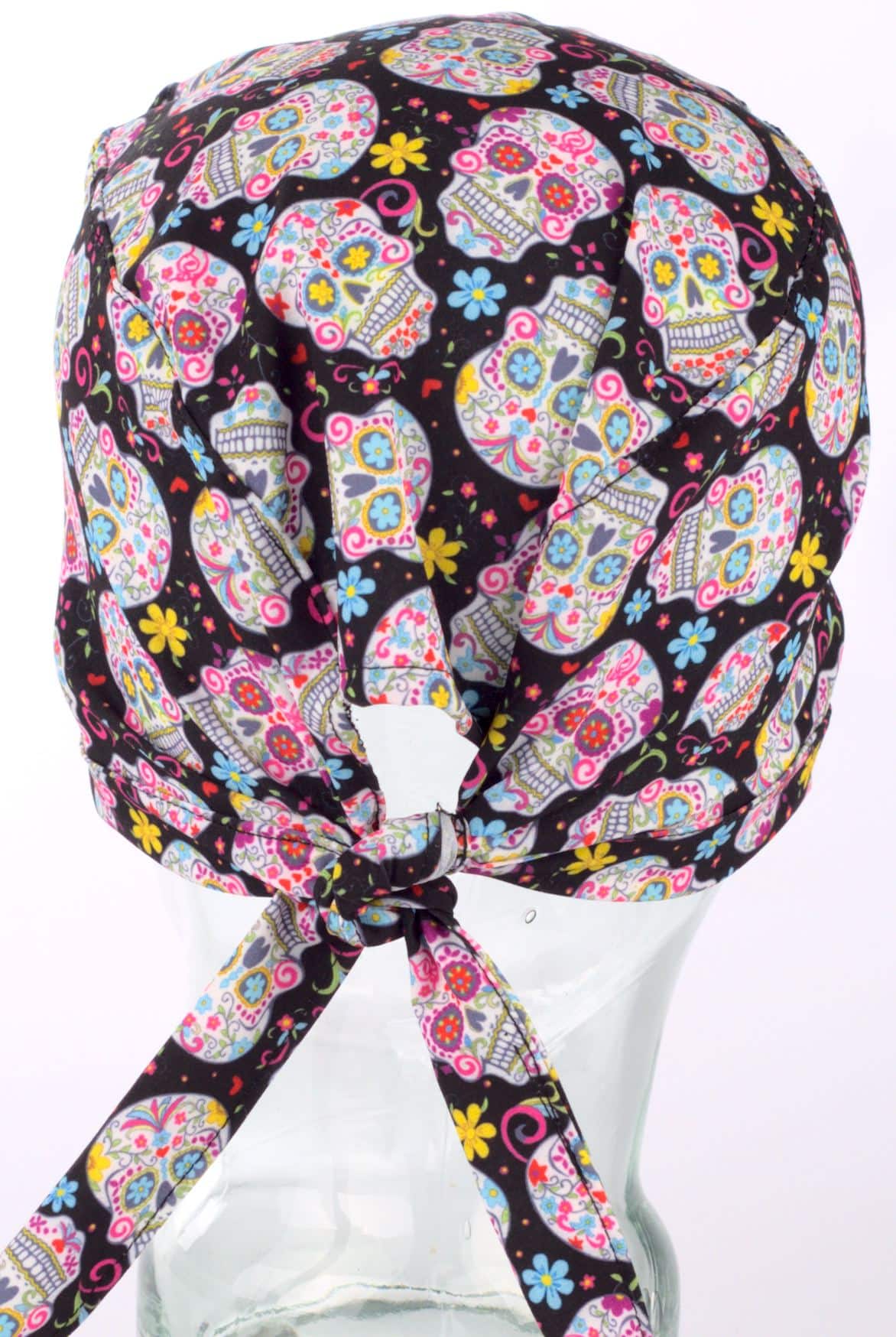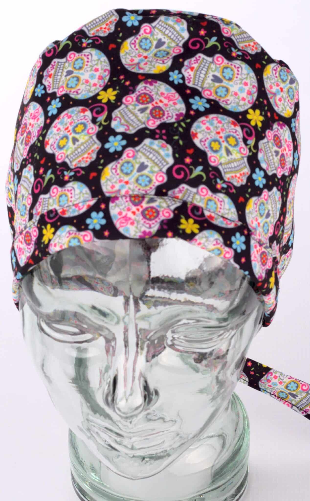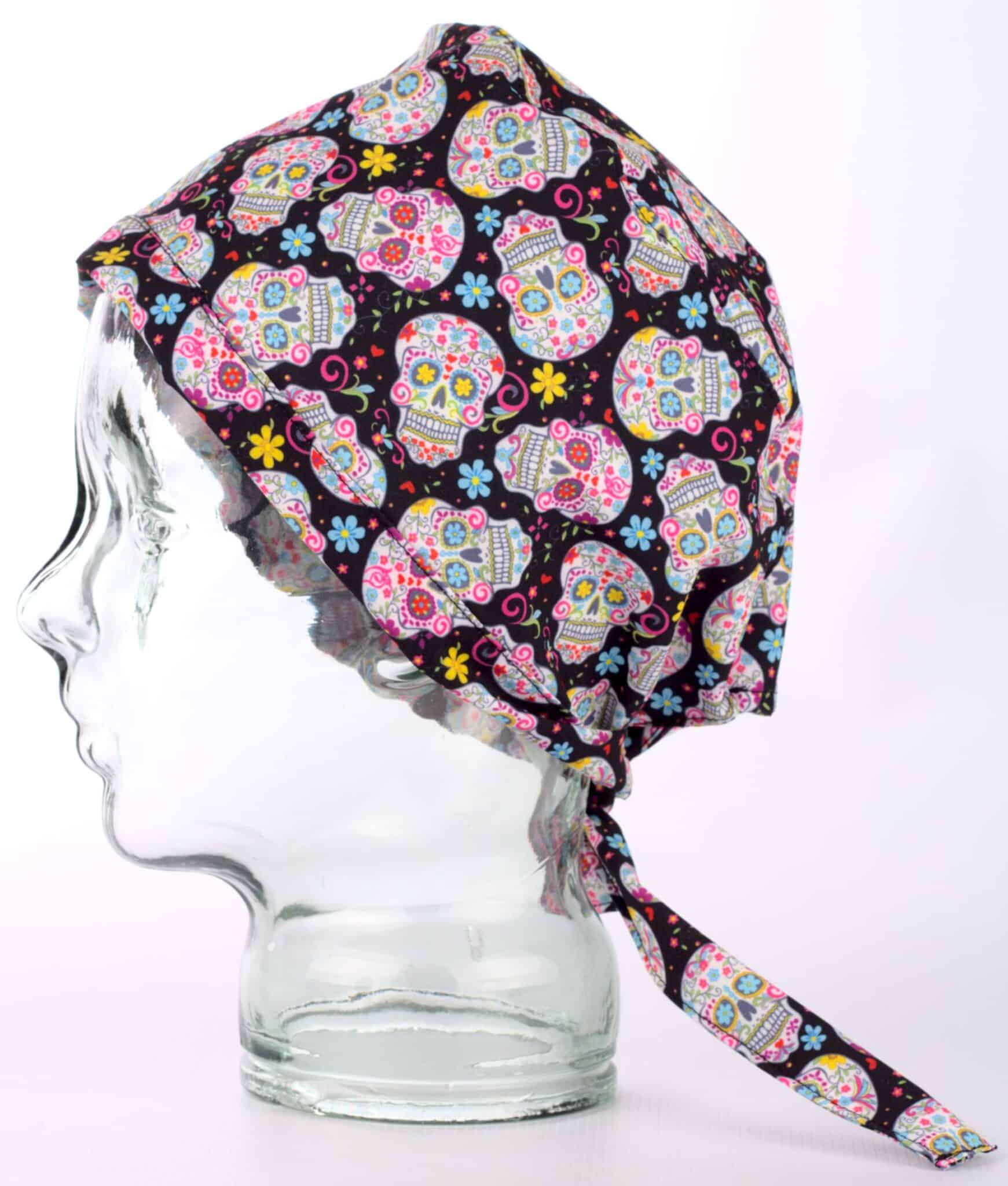 Медицинска хирургическа шапка с щампа Черепчета. Моделът е изработен от мек плат, който е много лесен за поддръжка. Размерът е универсален, а широчината се регулира с връзки отзад. Шапката допълва идеално медицинска туника унисекс с щампа Черепчета. За завършена работна визия добавете и текстилна кърпа за уста с щампа Черепчета. Хирургическата шапка с Черепчета е подходящ аксесоар към работната униформа на медицински и санирани работници.