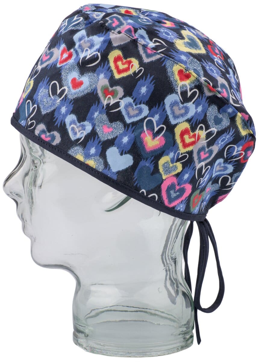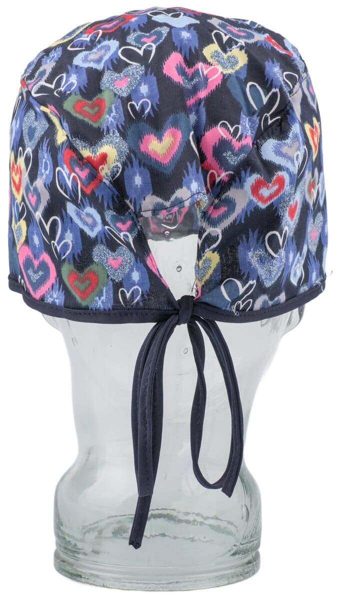Шапка хирургическа с щампа Hearts. Изработена е от плат с високо съдържание на памук, което гарантира комфорт през дългите часове работа. Размерът на шапката е универсален, а широчината й се регулира според необходимото с връзки в задната част. Шапка хирургическа с щампа Hearts е подходящ завършек на медицинската ви униформа. Можете да разгледате и останалите ни предложения за медицински шапки.