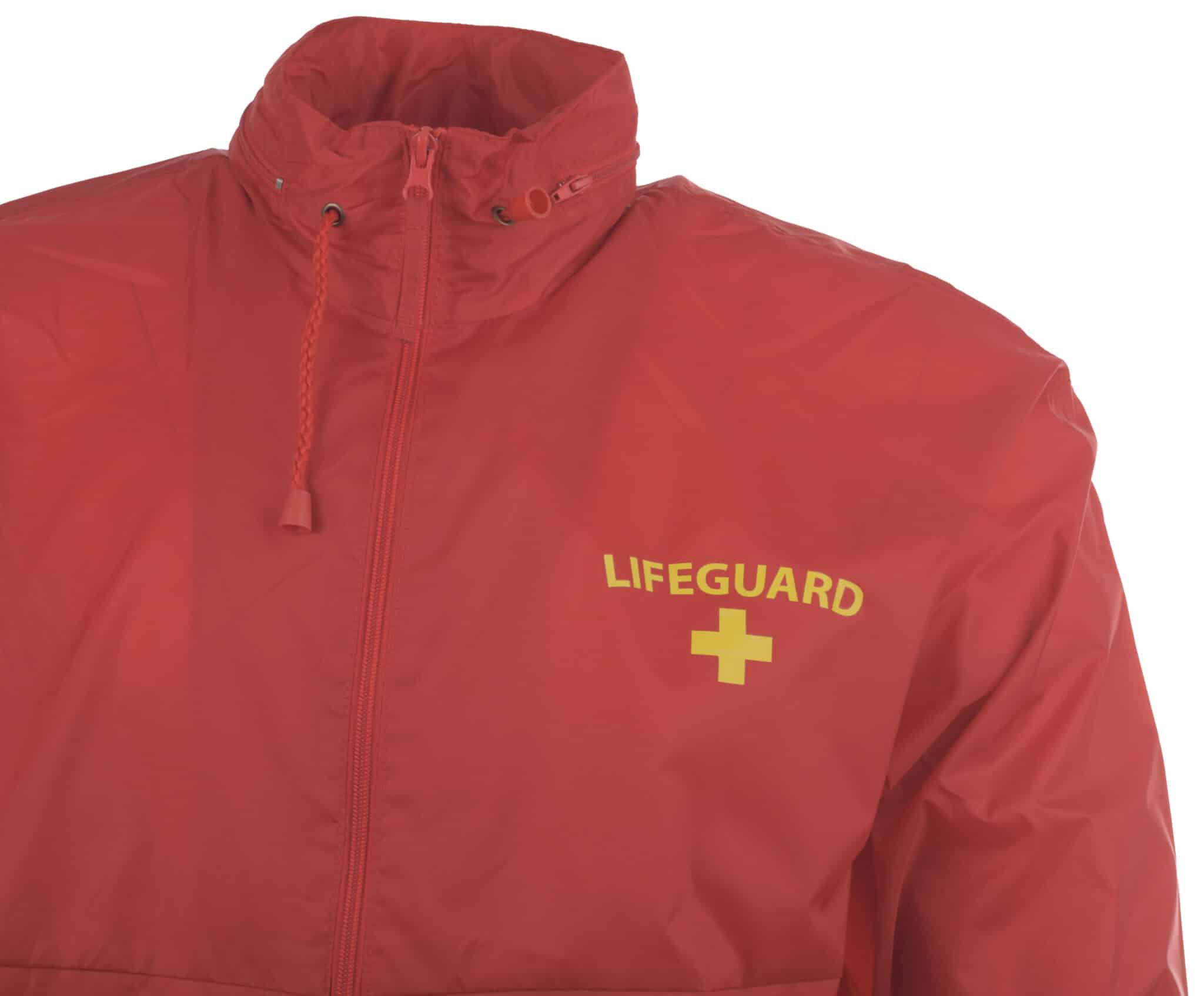 Яке ветровка Спасител червено на цвят – специално създадена за работно облекло на спасители. Материята на ветровката е 100% найлон. Има два странични джоба разположени в долната част. Качулката е скрита в яката. Яке ветровка Спасител – червено има 2 надписа. Предният надпис е разположен в горната лява част, а задният е по-голям, разположен по ширината на гърба. Надписите са изработени чрез DTF печат. Тази технология предлага отлична устойчивост при пране и надраскване, както и при продължително излагане на слънце. Печатът е дигитален и като такъв, чрез него може да се постигне изключително прецизно фотореалистично качество.