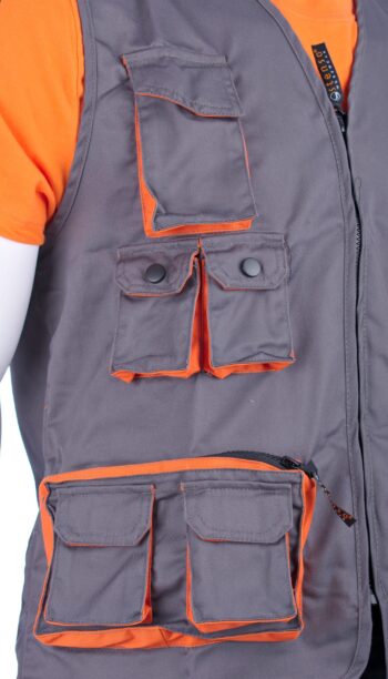 Полугащеризон модел Дезман с регулируеми ластични презрамки. Закопчаването му е с копчета от двете страни. Разполага с четири джоба отпред, единият от които е с цип. Също така има два джоба отзад – един отворен и един с капак, освен тях има и два обемни затворени инструментални джоба отстрани. Полугащеризон Дезман можете да съчетаете в комплект с яке Дезман.